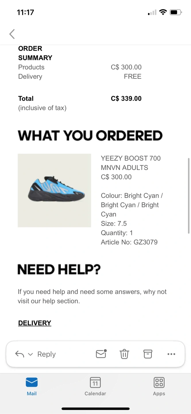 Selling a pair of Yeezy Boost 700 MNVN in Bright Cyan! There's a pair for infants in size 8K and a pair for adults in size 7.5. The infant pair was originally $190 and the adult pair was originally $300 BNIB