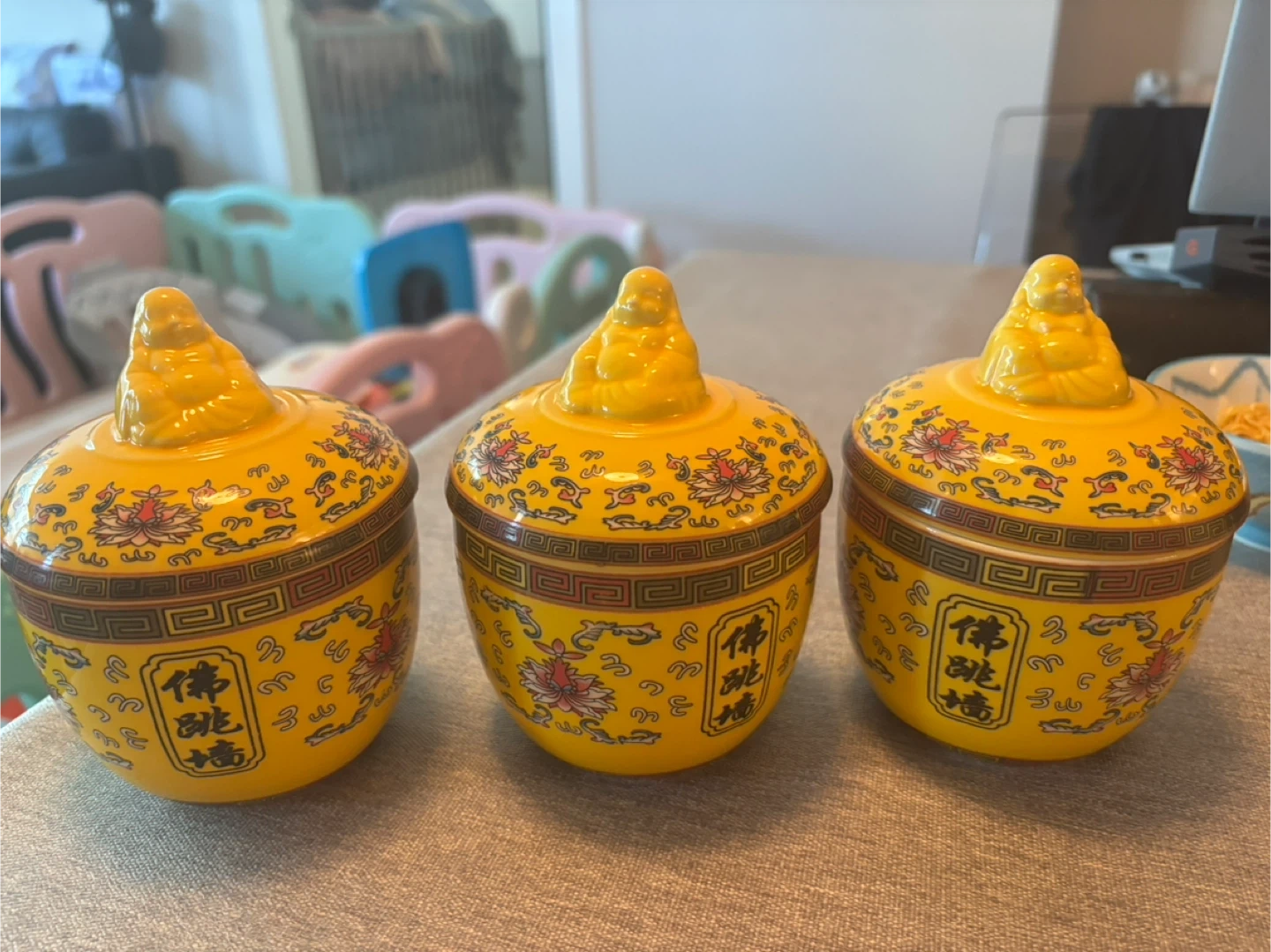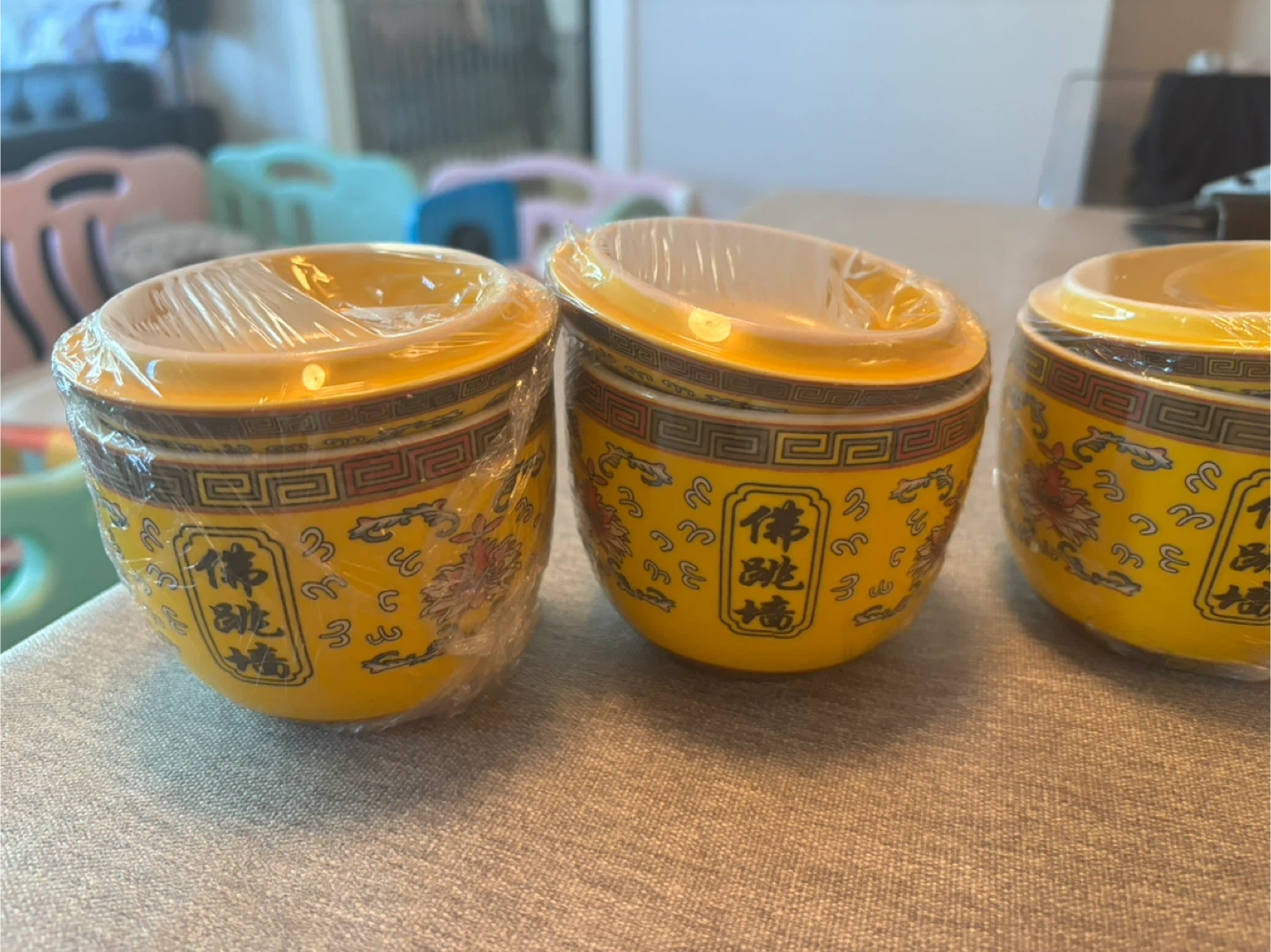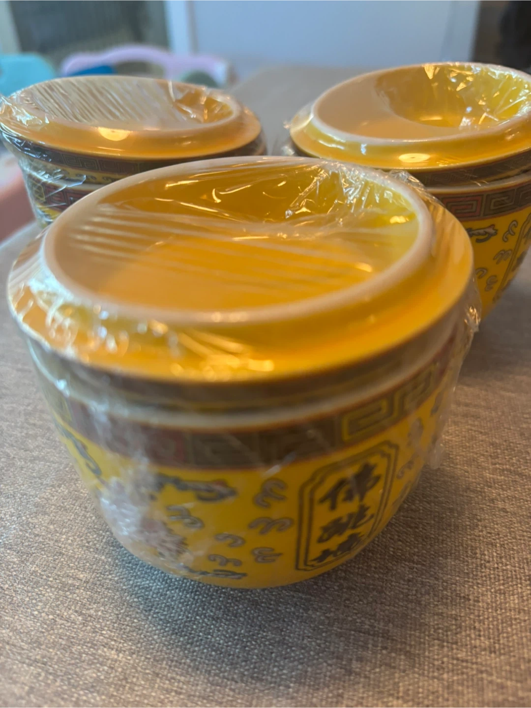 Selling a set of three bowls with a unique Buddha design! They are a vibrant yellow colour and feature intricate floral patterns. Perfect for adding a touch of zen to your kitchen or dining area $8 for all three Pick them up near Richmond Centre