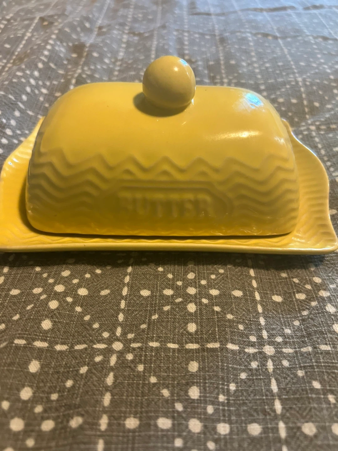 Here's a cute yellow ceramic butter dish for your kitchen! It's in great shape and ready to hold your favourite butter ๐ง