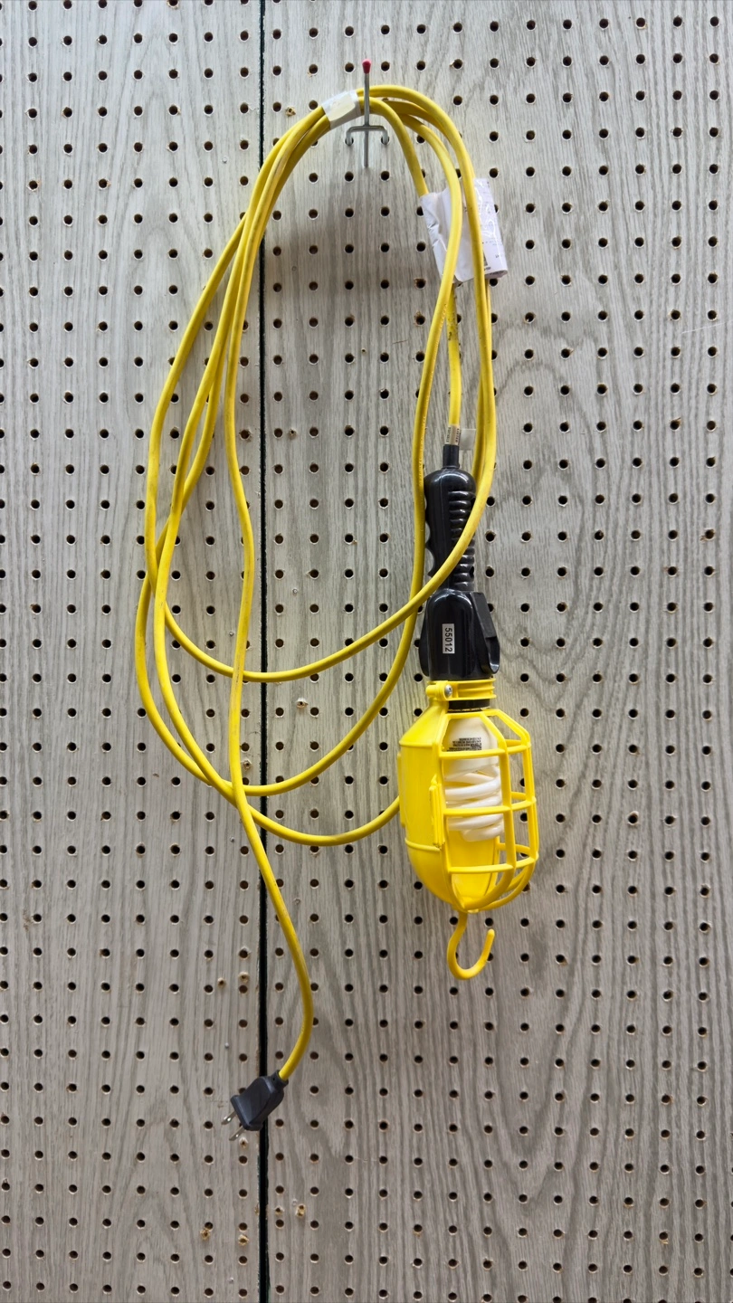 Selling a handy yellow work light, perfect for projects around the house or in the garage! It has a protective cage around the bulb and a hook for easy hanging