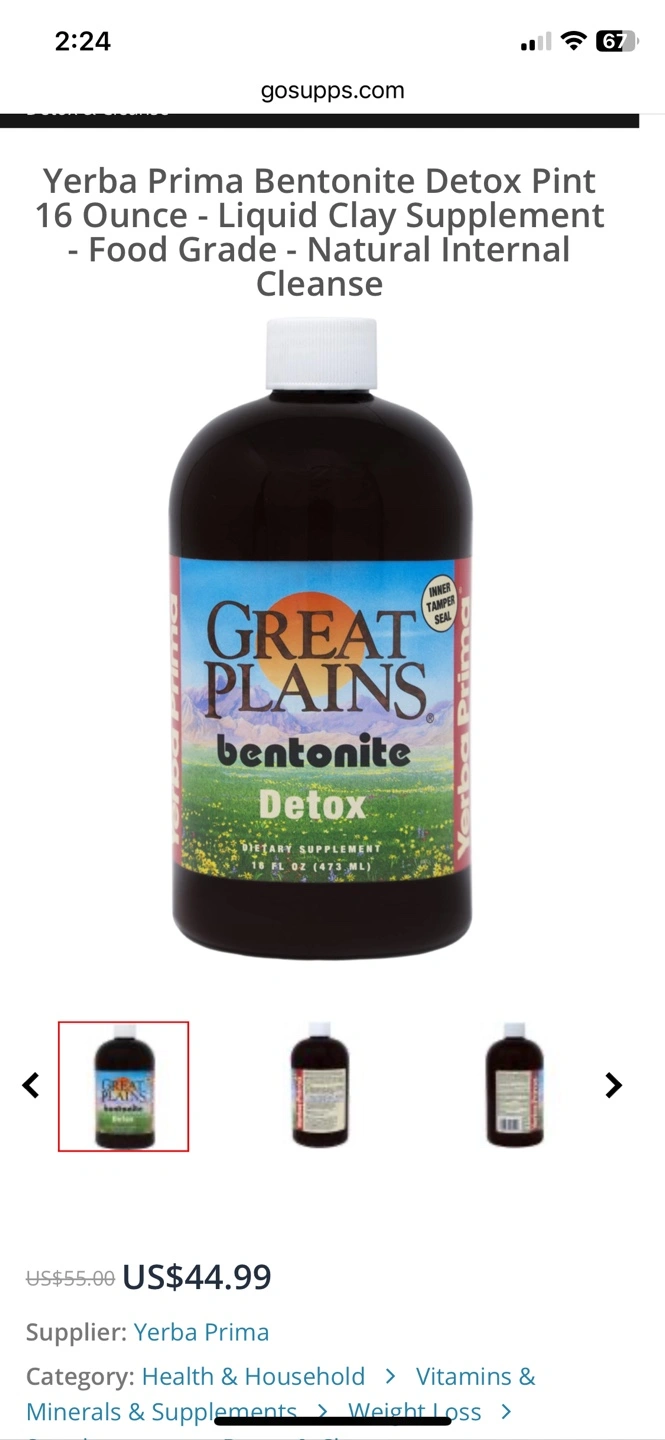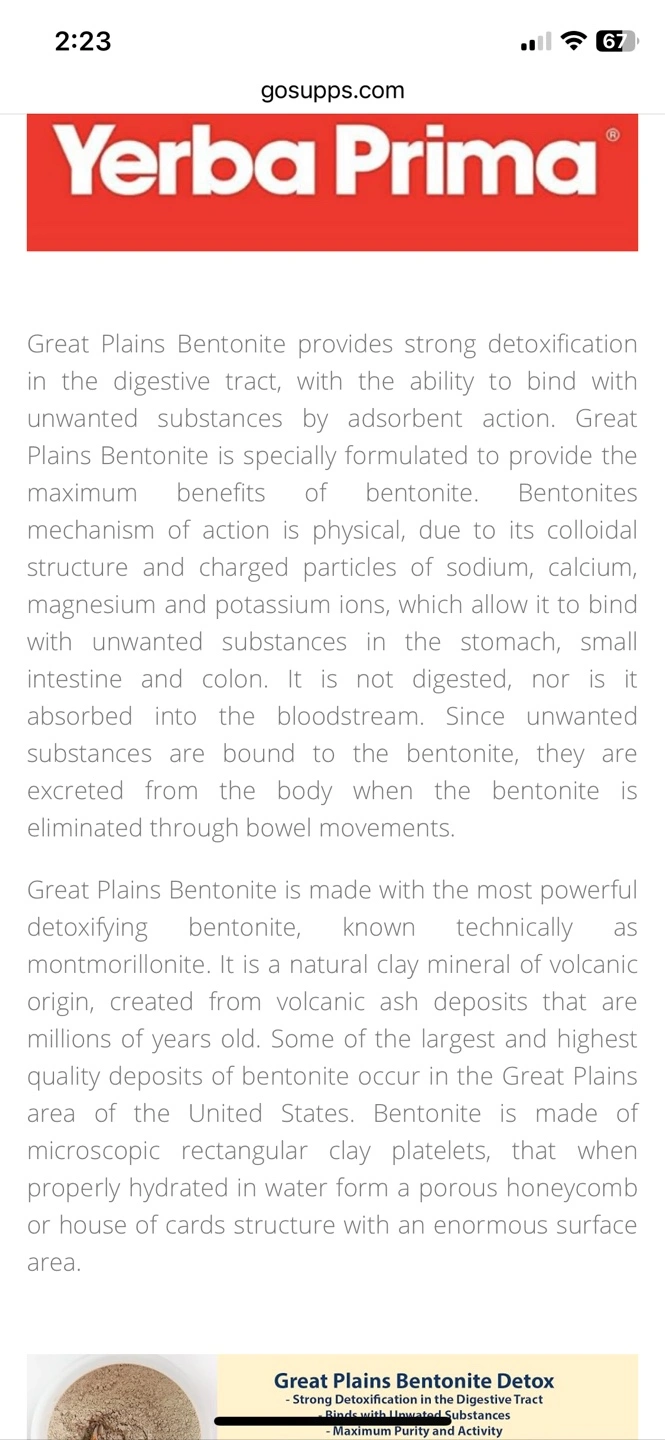 Yerba Prima Bentonite Detox 16 oz - Liquid Supplement