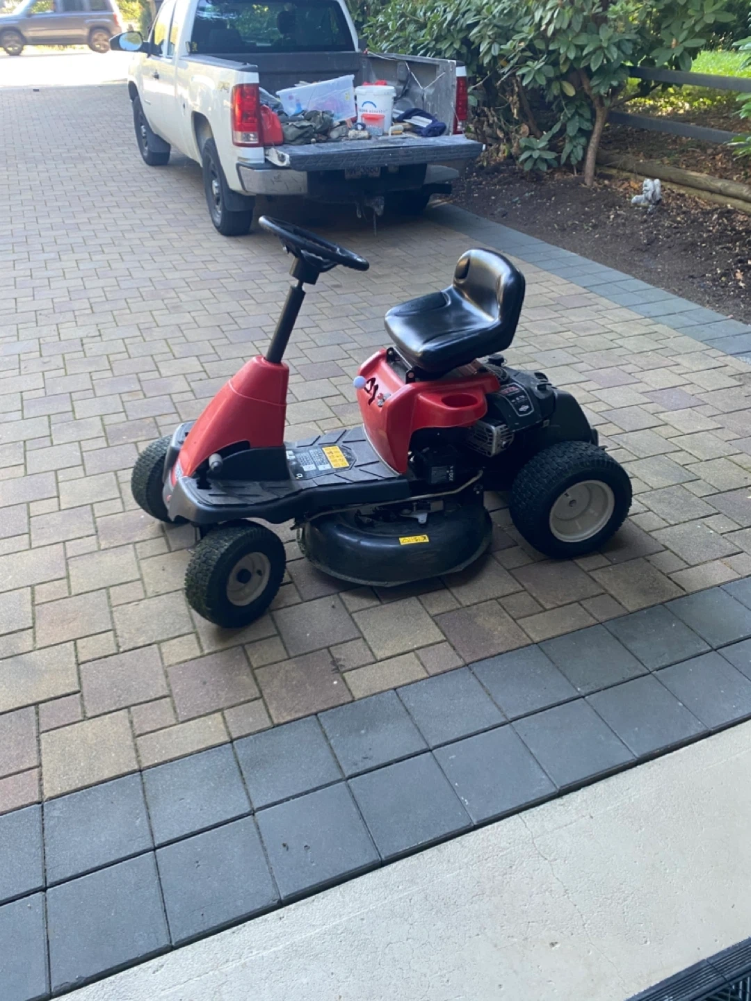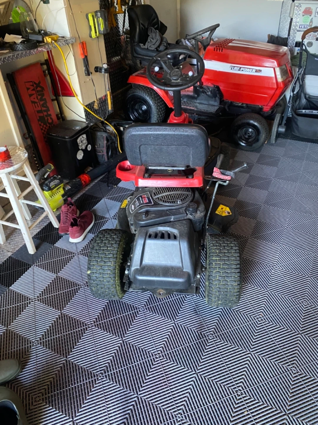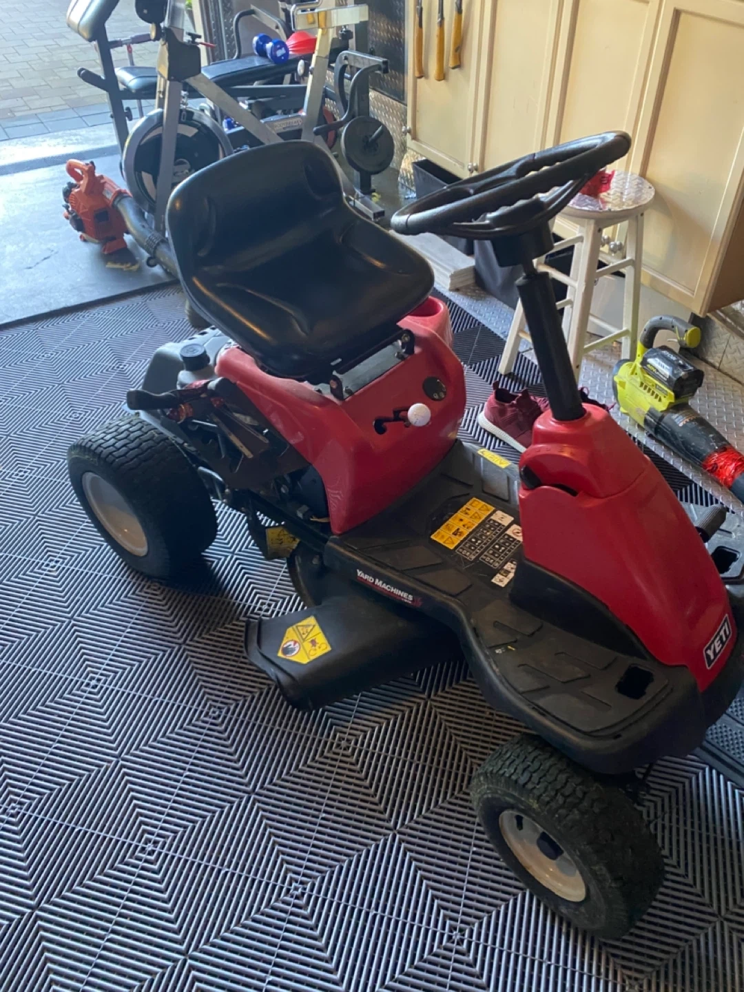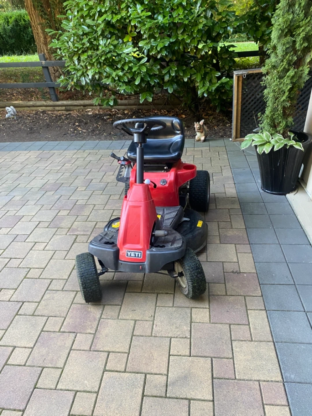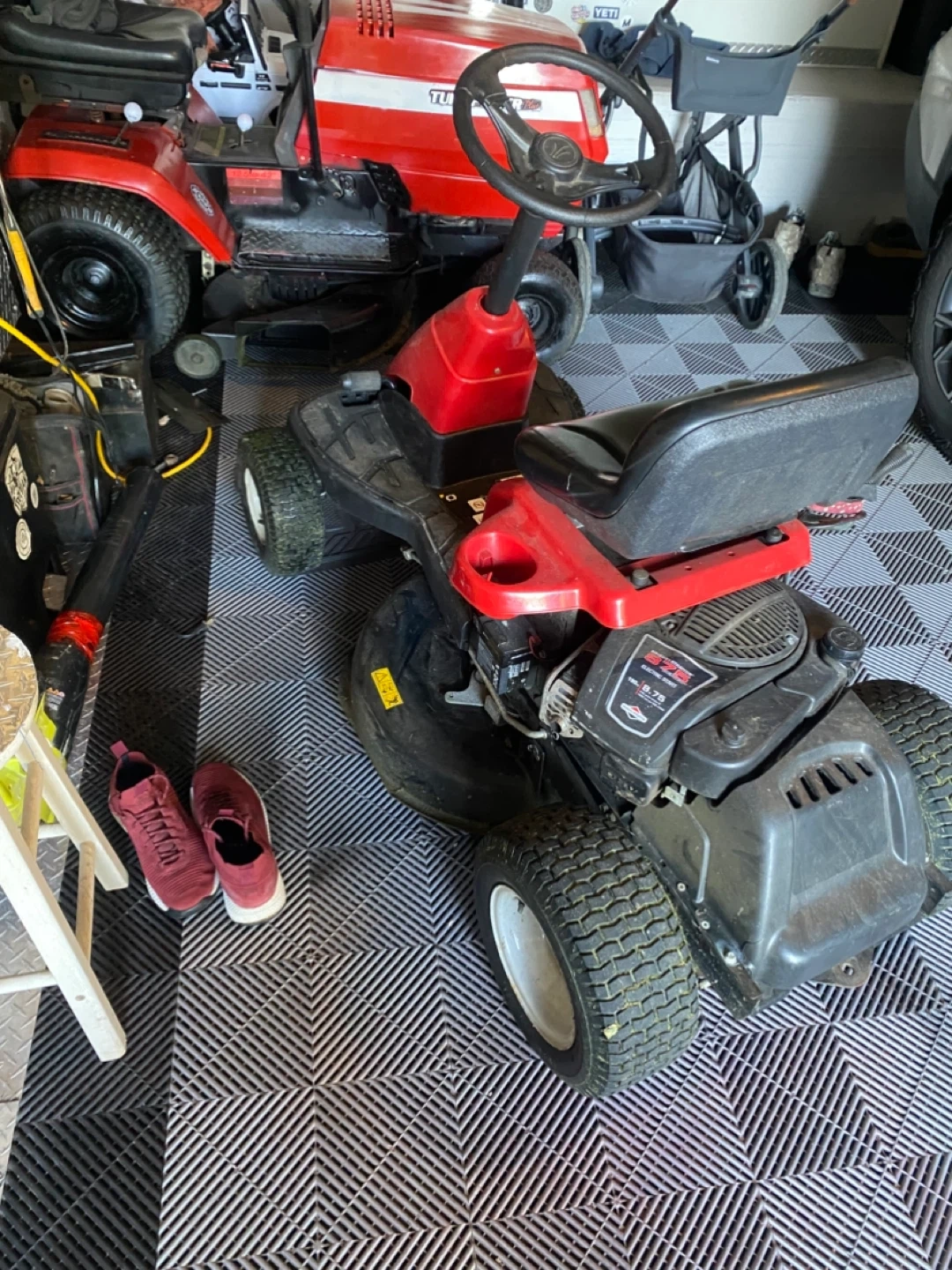 Selling a used Yard Machines ride-on lawn mower. It's red and black and ready to tackle your yard work! It's in good condition and ready for a new home just needs a new blade engage cable but I just use a bungee cord works fine runs strong