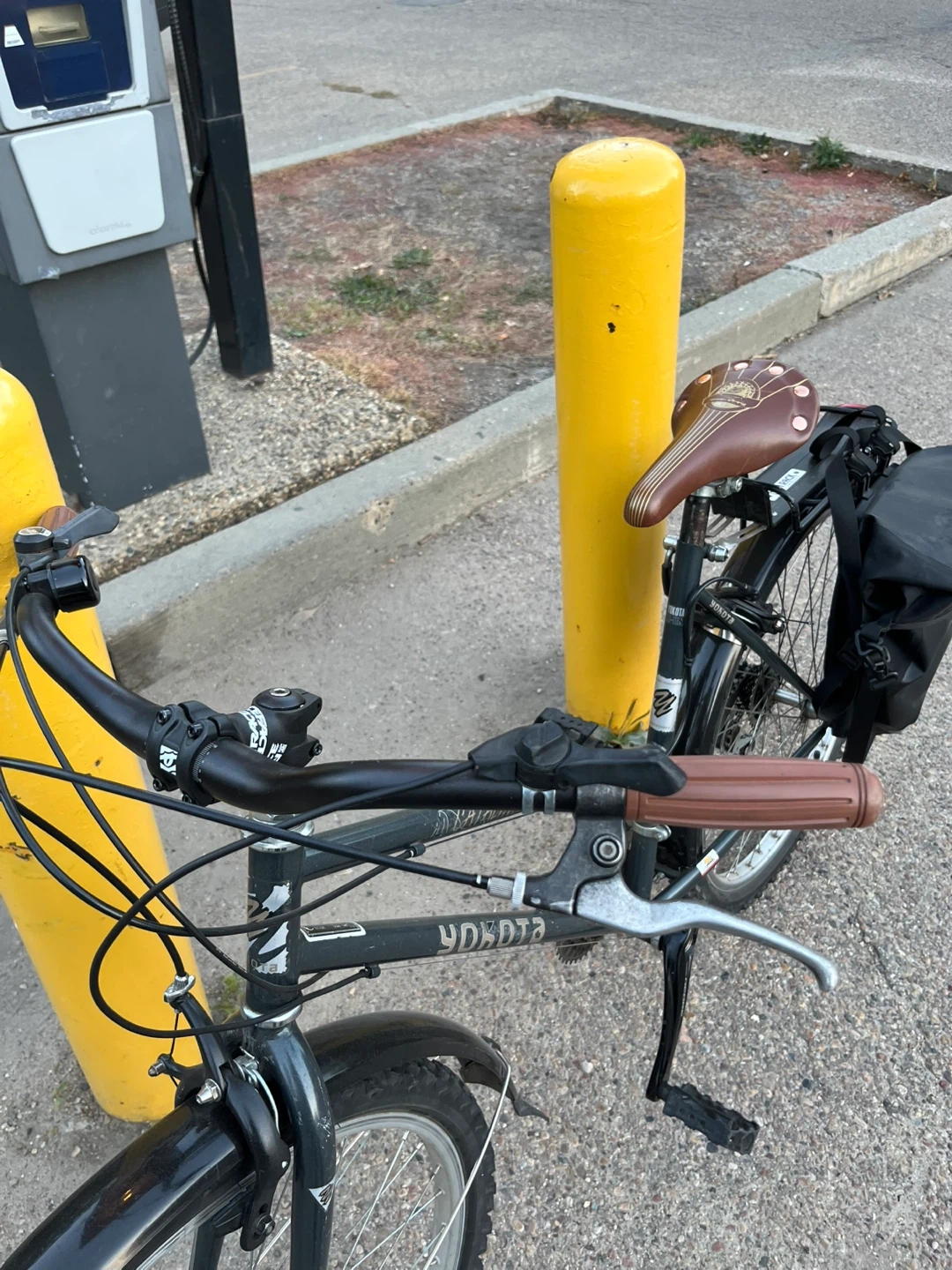 Selling a Yokota bike with brown seat. It's in okay condition. Air in the tires are good, the breaks may require adjustment.