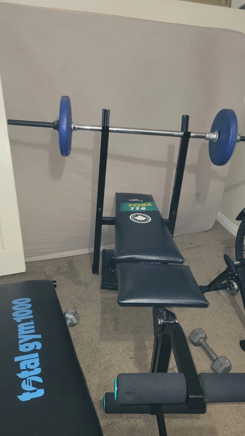 Selling a York 774 weight bench and a Total Gym 1000. Both are in good condition and ready for your home gym setup