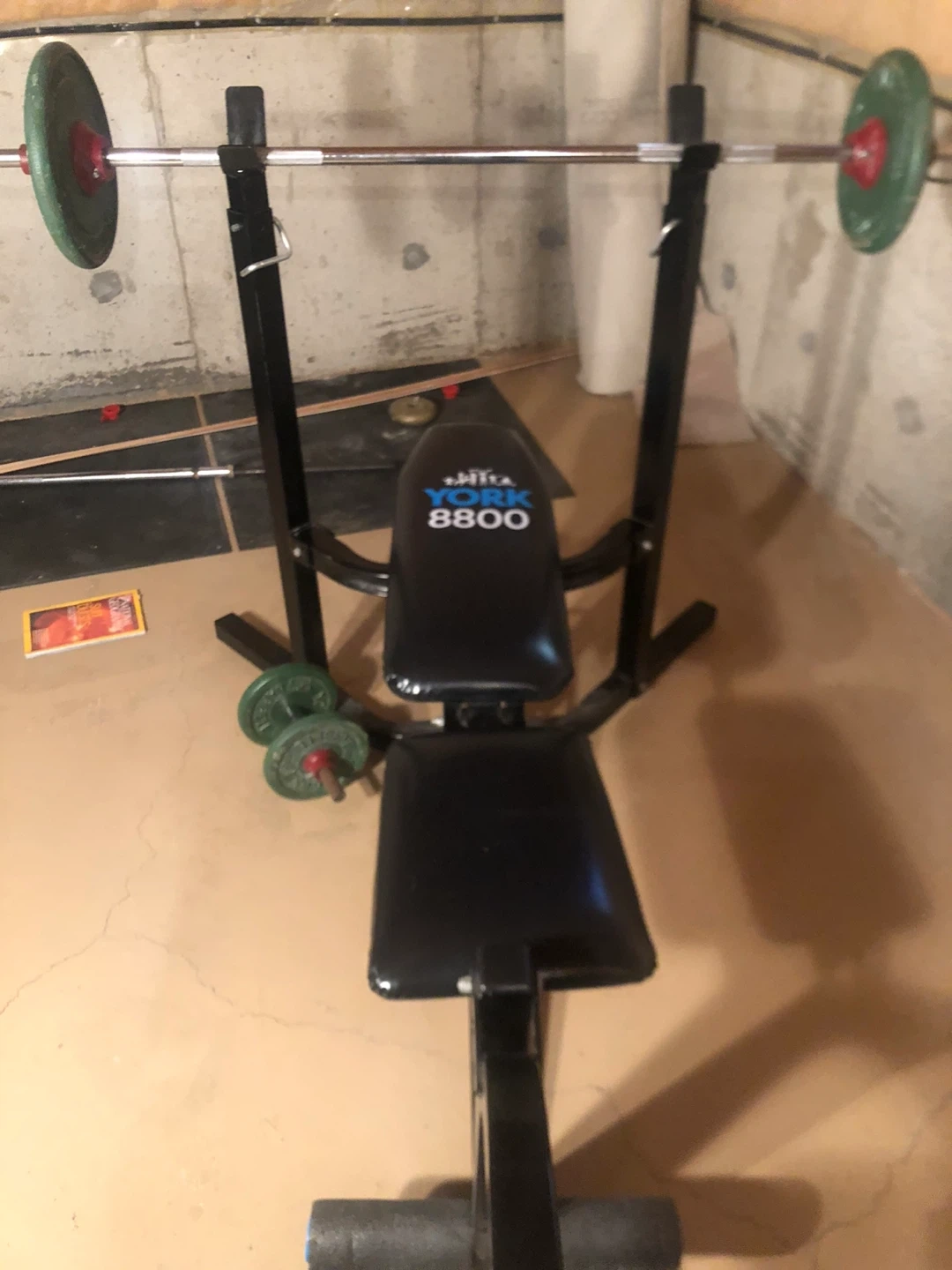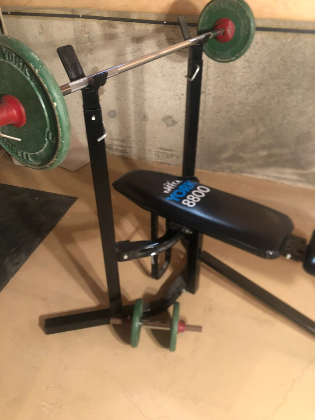 Selling a York 8800 weight bench It's in good used condition and ready for your home gym. Various weights dumbbell/barbell Also includes the curl mate attachment for arm workouts and a sit up board. Need gone ASAP