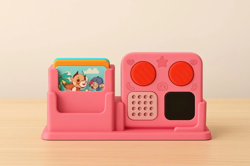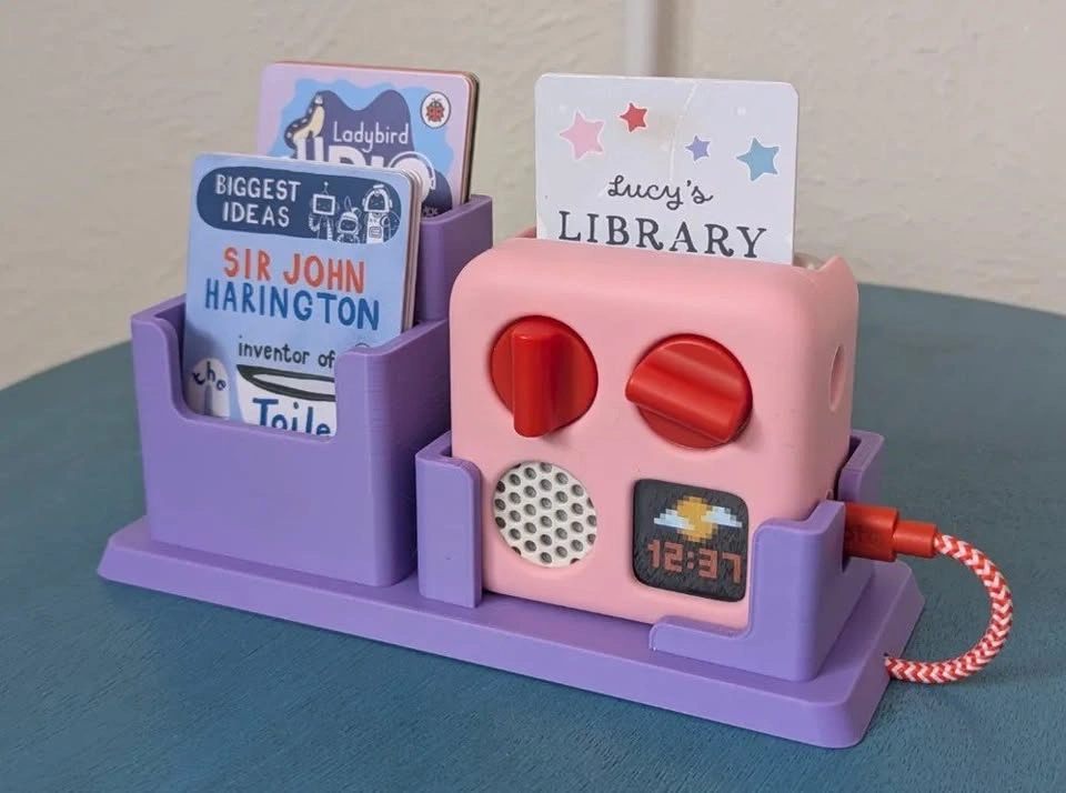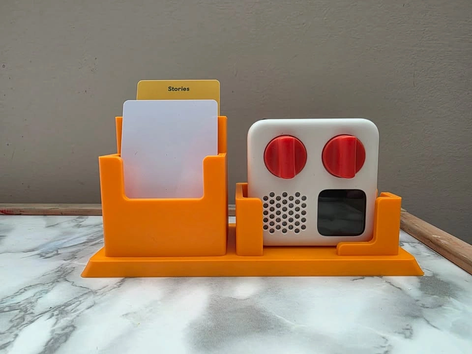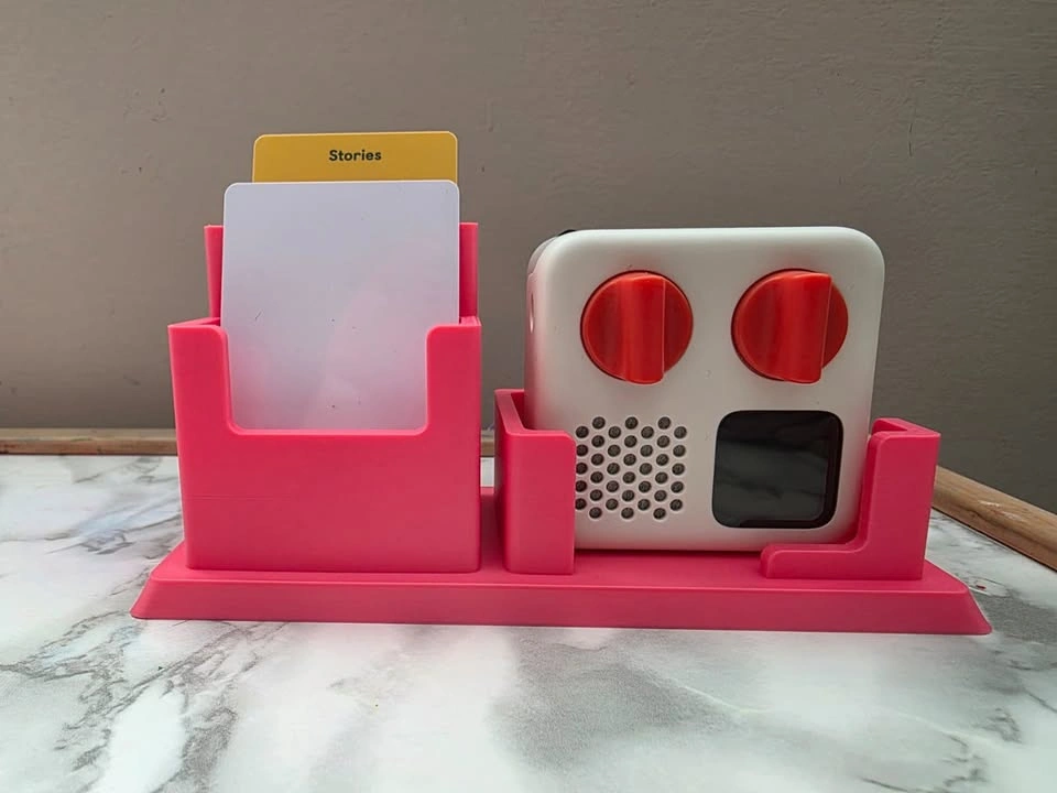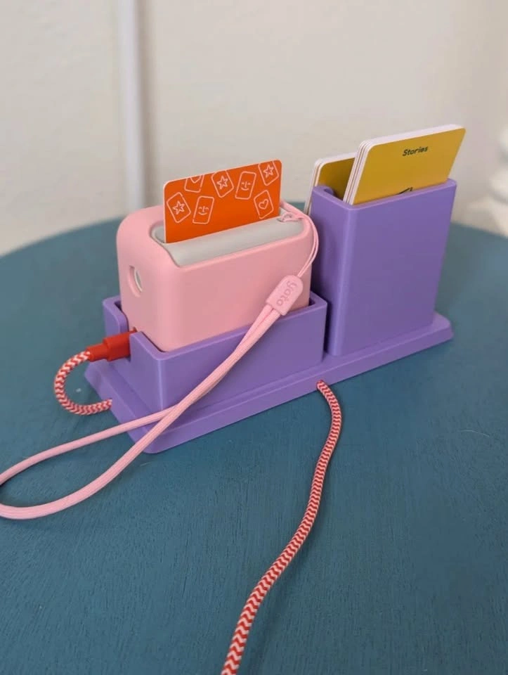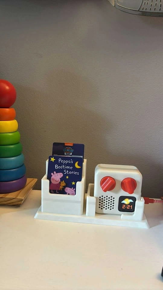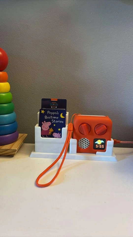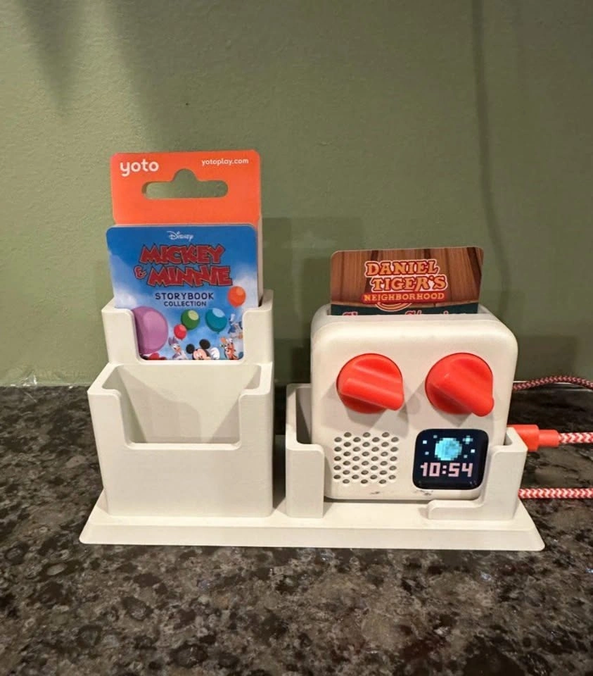 *** YOTO PLAYER AND CARDS ARE NOT INCLUDED *** This dock comfortably fits a Yoto Mini 3rd gen player with a silicone jacket. It also features a two-tiered storage compartment for cards and a channel that runs through the dock's underside to keep the charging cable neat and minimally visible. Each storage compartment can hold up to 18 cards. These docks are 3d printed by myself. Current color choices: Black Purple Pink Dark Gray Orange Red Blue Any other colors you'd like please message me and we can discuss.