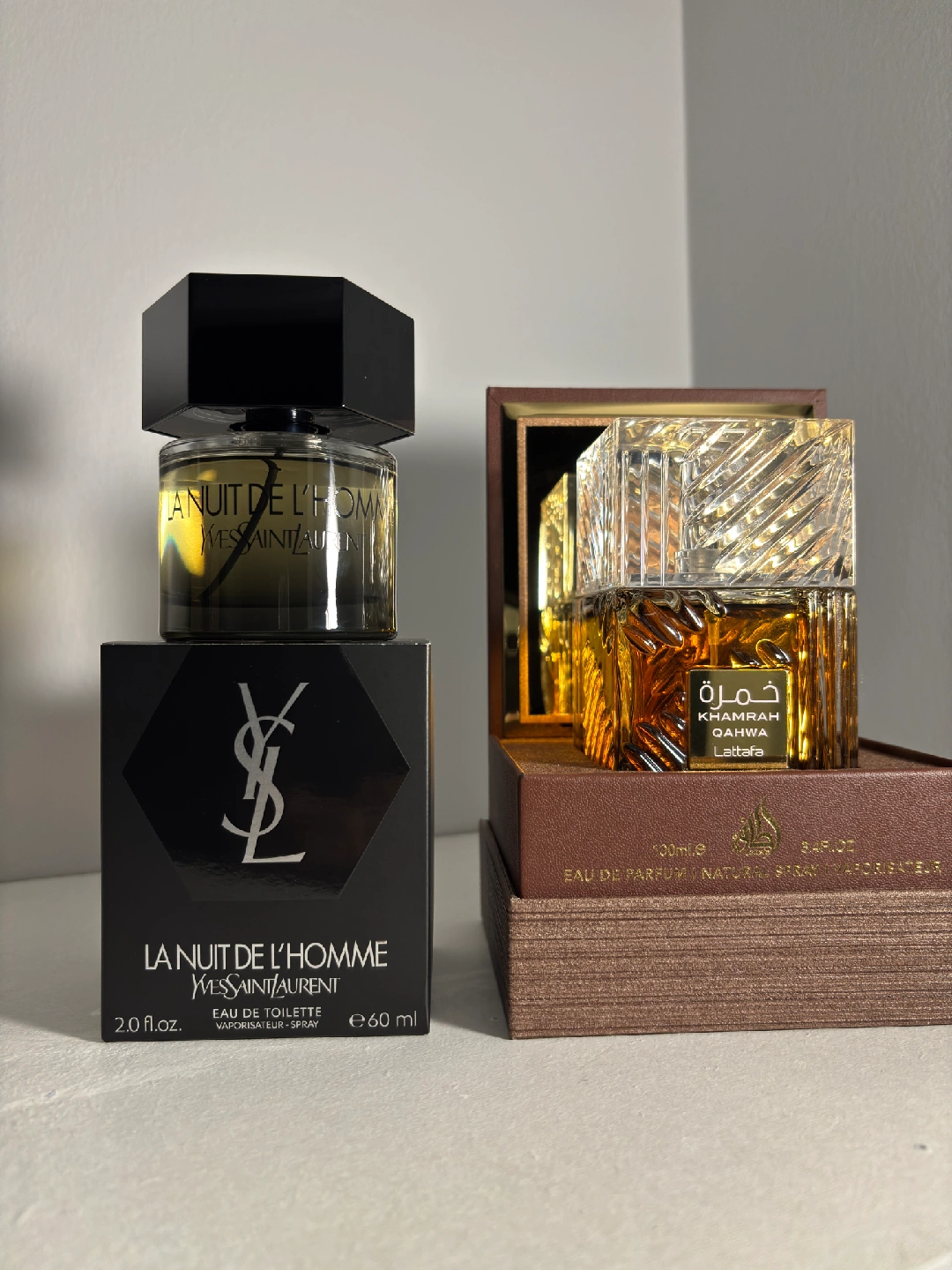 Opened but never used, both in great condition with boxes. They've just been collecting dust. YSL La Nuit de L'Homme 60 mL - $110 • Lattafa Khamrah Qahwa 100 mL - $30 Can also be sold separately. Local pickup.