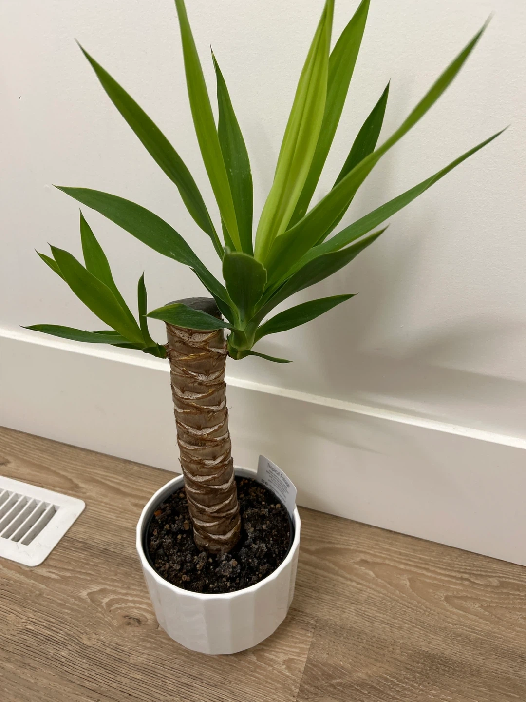 Selling a healthy yucca plant potted in a simple white pot! The plant stands about 9 inches tall, making it a great addition to any space. Pick up eastview.