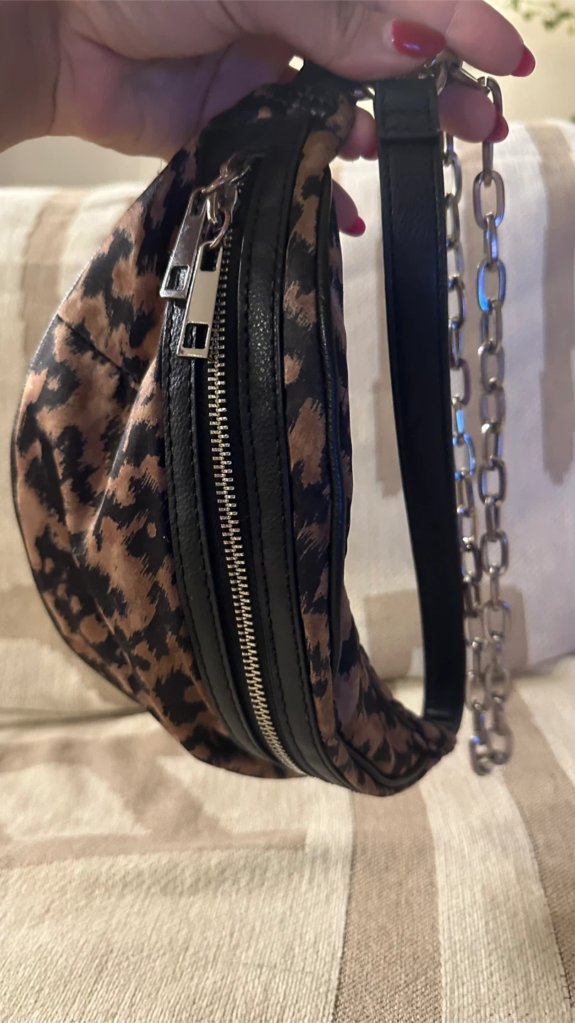 Selling a Zara belt bag with an animal print. It features a silver chain and black leather detailing. Great for adding a stylish touch to any outfit! Send your offer! Pick up at 88 Erskine ave.