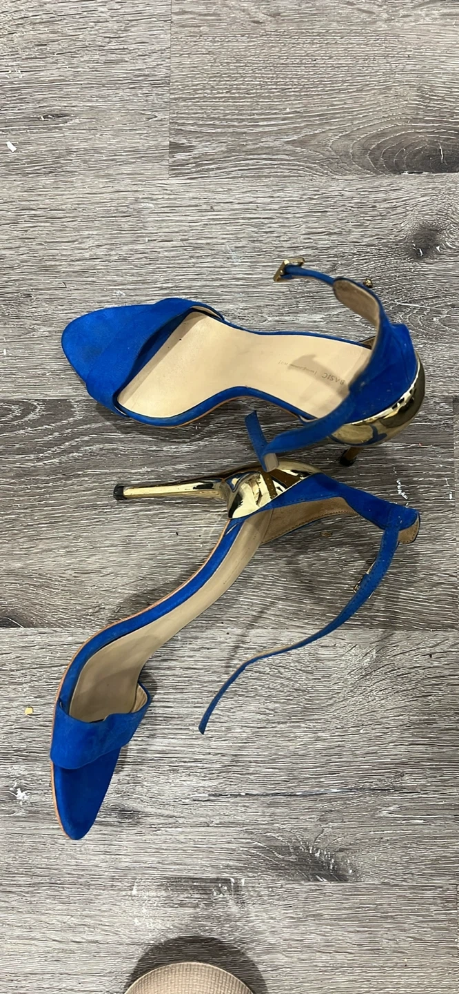 Selling a pair of Zara Basic heels in a vibrant blue colour! They are a size 7.5 and feature a stylish gold heel. Perfect for adding a pop of colour to your outfit!