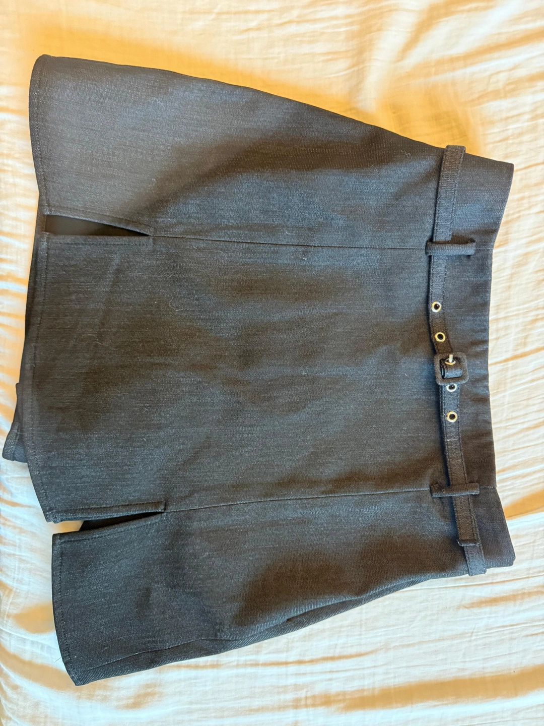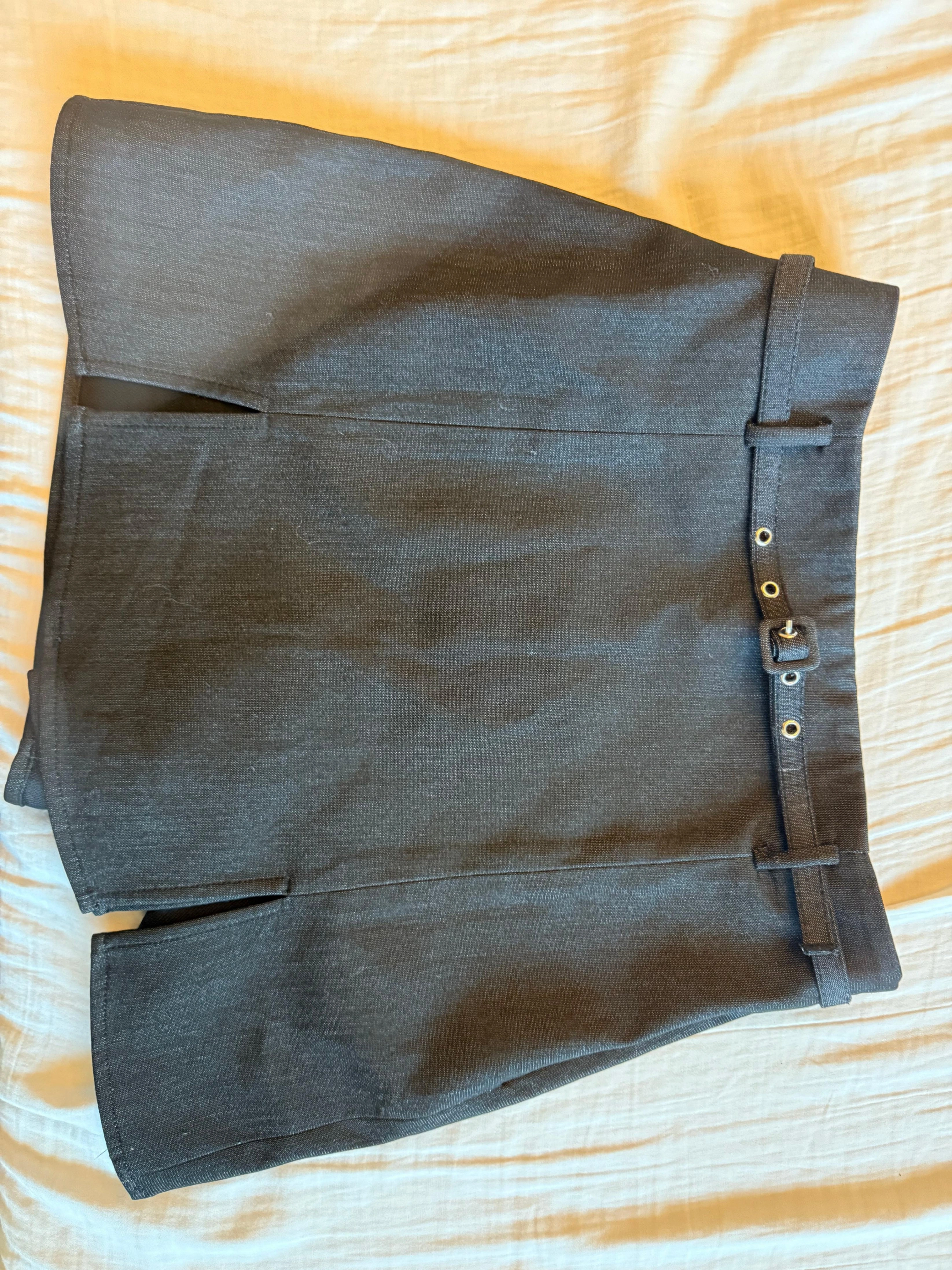 Zara Belted Mini Skort / Mini Skirt, Size XS. Gives the Miu Miu vibe. Colour: Dark Grey Brand New, Never Worn. Missing tag. Removable Belt