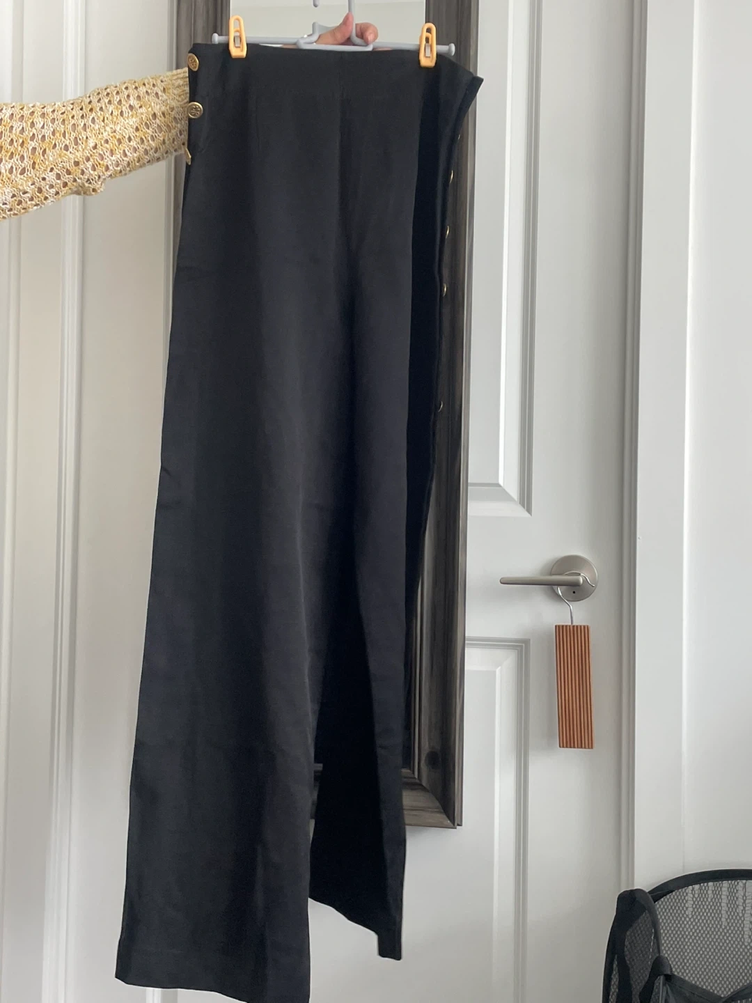 Selling a brand new pair of Zara black pants in size M. They have gold button details on the sides. They were originally bought for $99.90 plus taxes. They are in new condition!