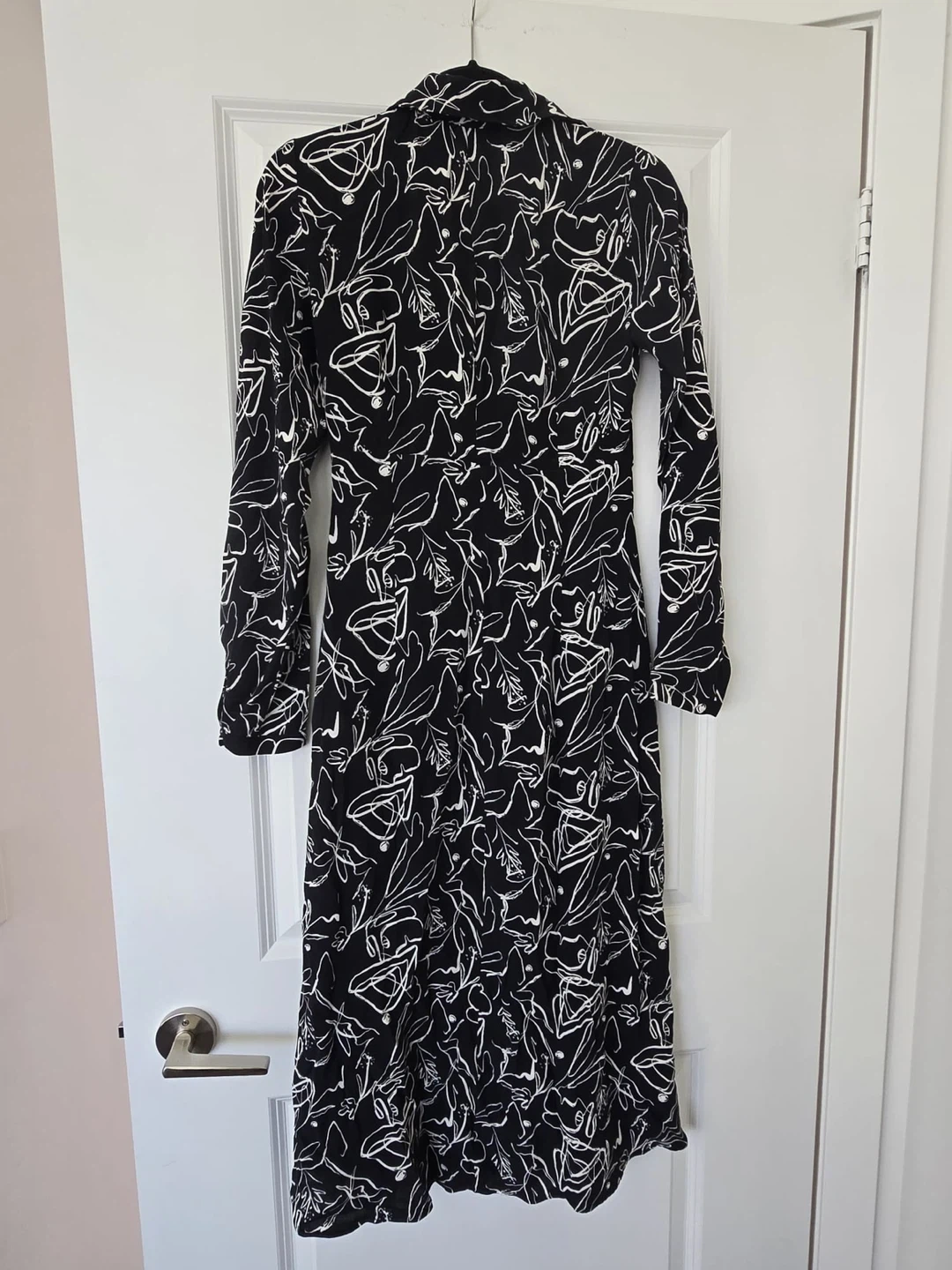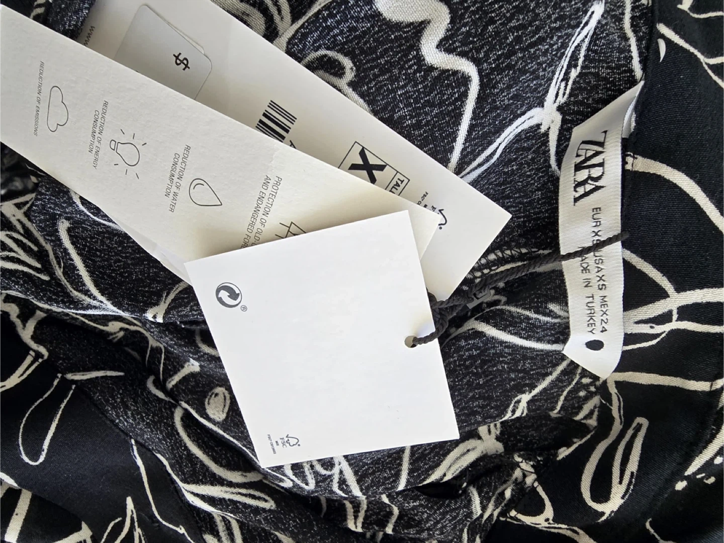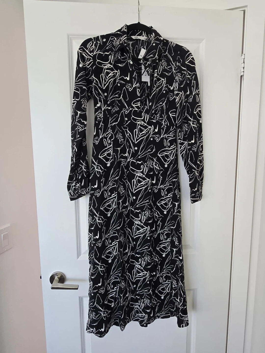 Selling a Zara dress in brand new condition! It's a beautiful black and white print, made of 100% viscose. Size is XS.