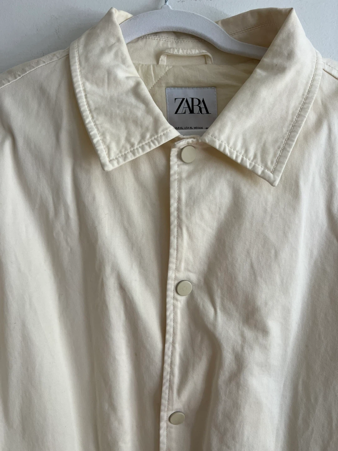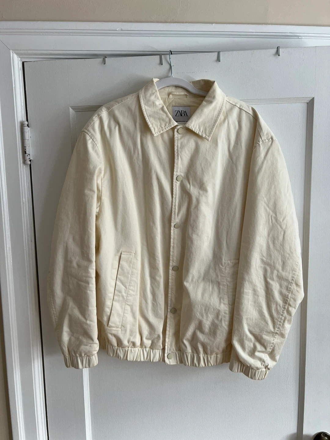 Selling a Zara cream-coloured jacket in excellent condition! It's a size XL and made in Turkey. It's a great light jacket for spring or fall
