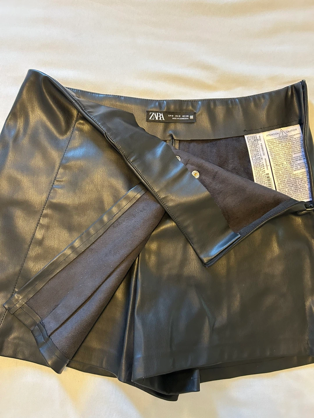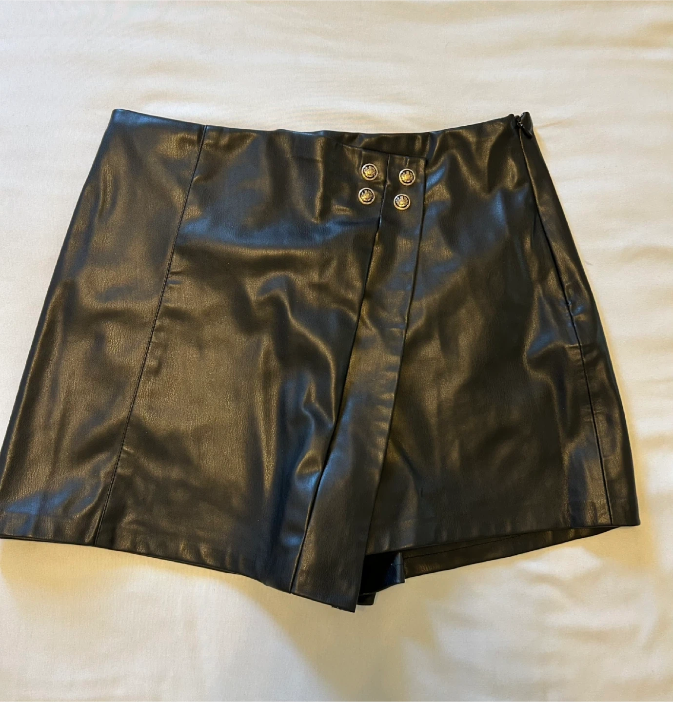 Selling a Zara faux leather skort in size medium. It's in great condition and features a stylish design with button details.