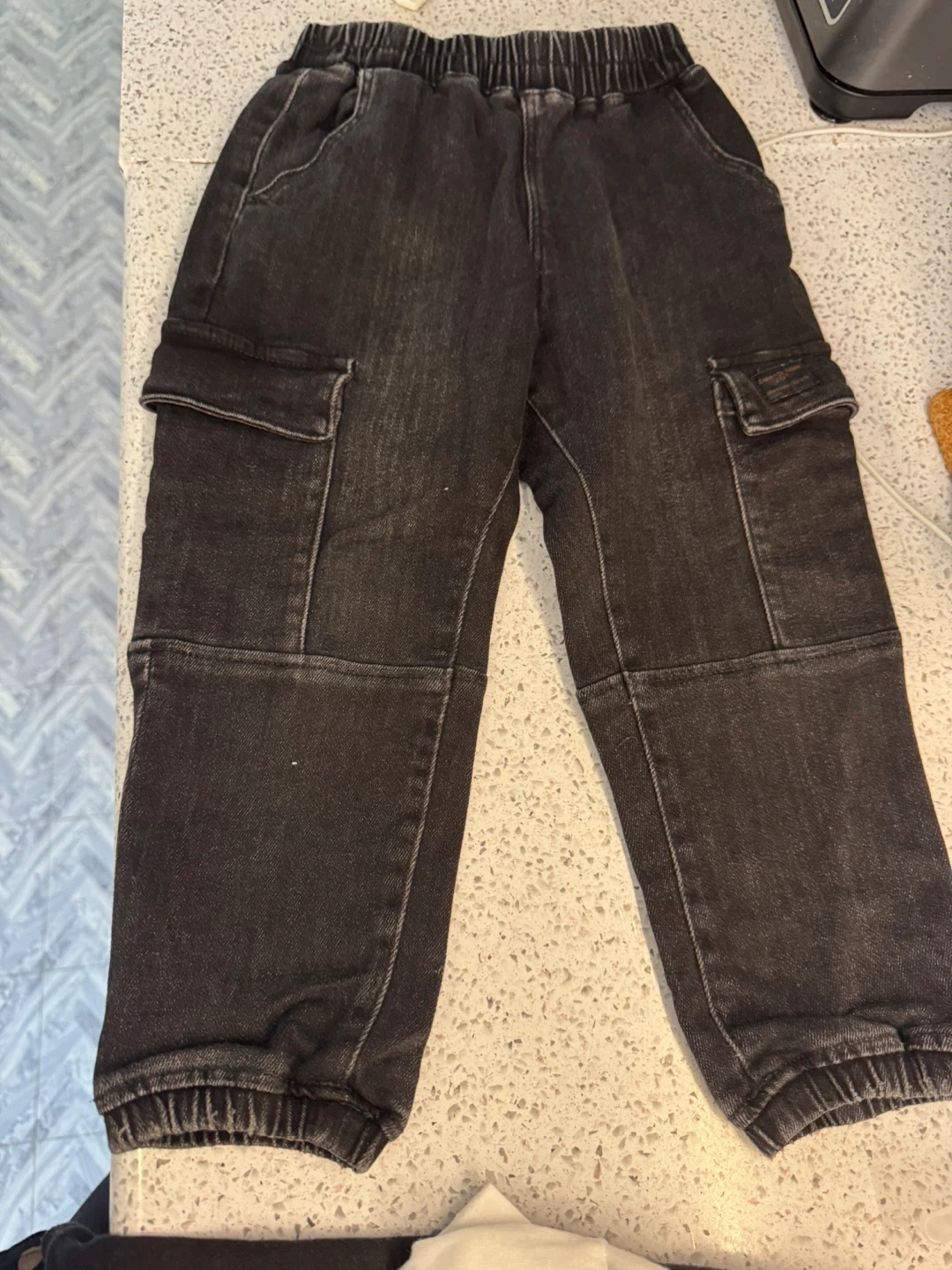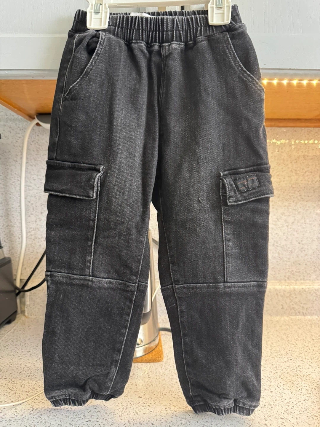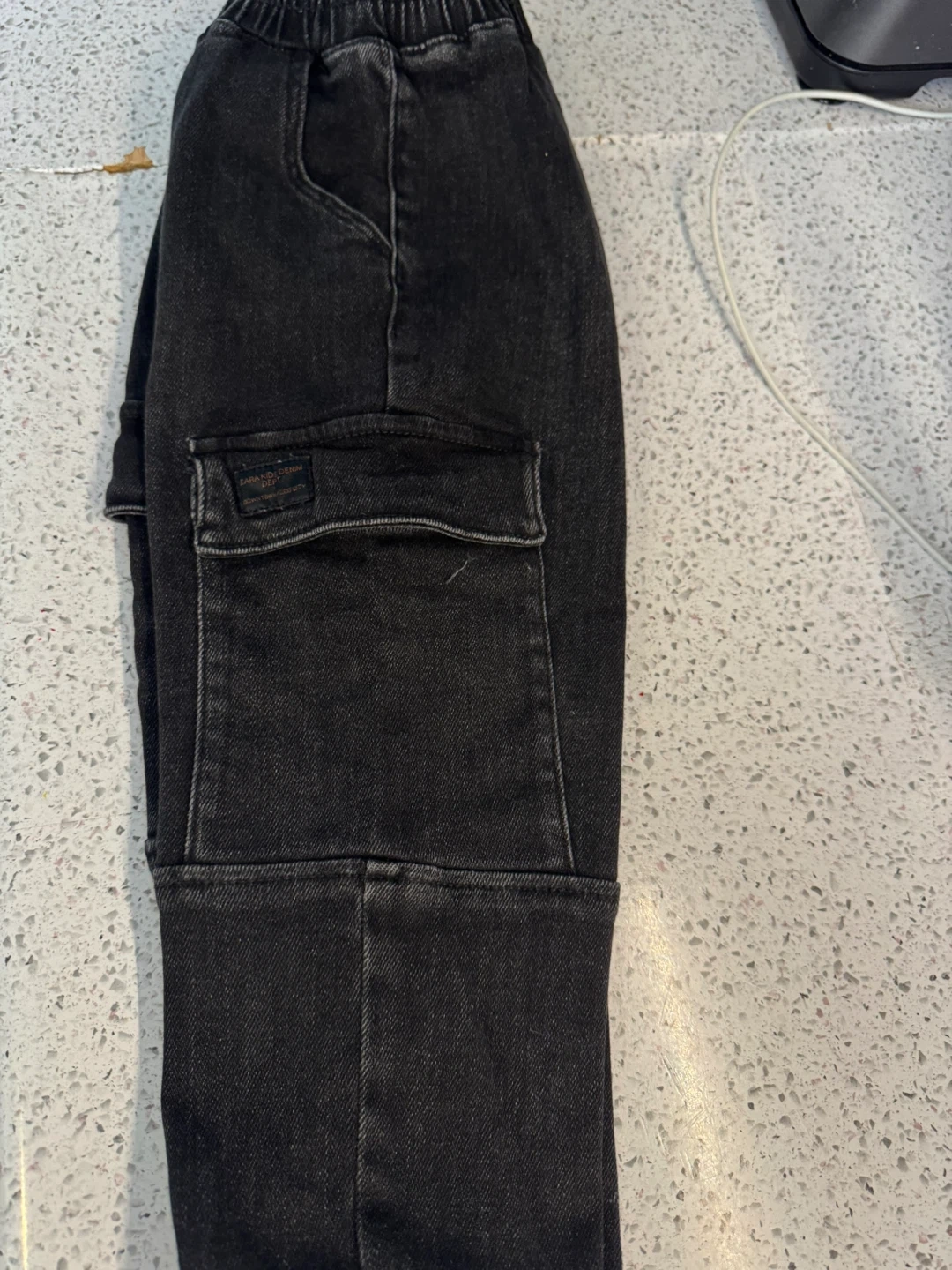 Selling a pair of Zara Kids cargo pants in black. They are size 3-4 years, or 104 cm. These pants are in great condition and ready for a new home