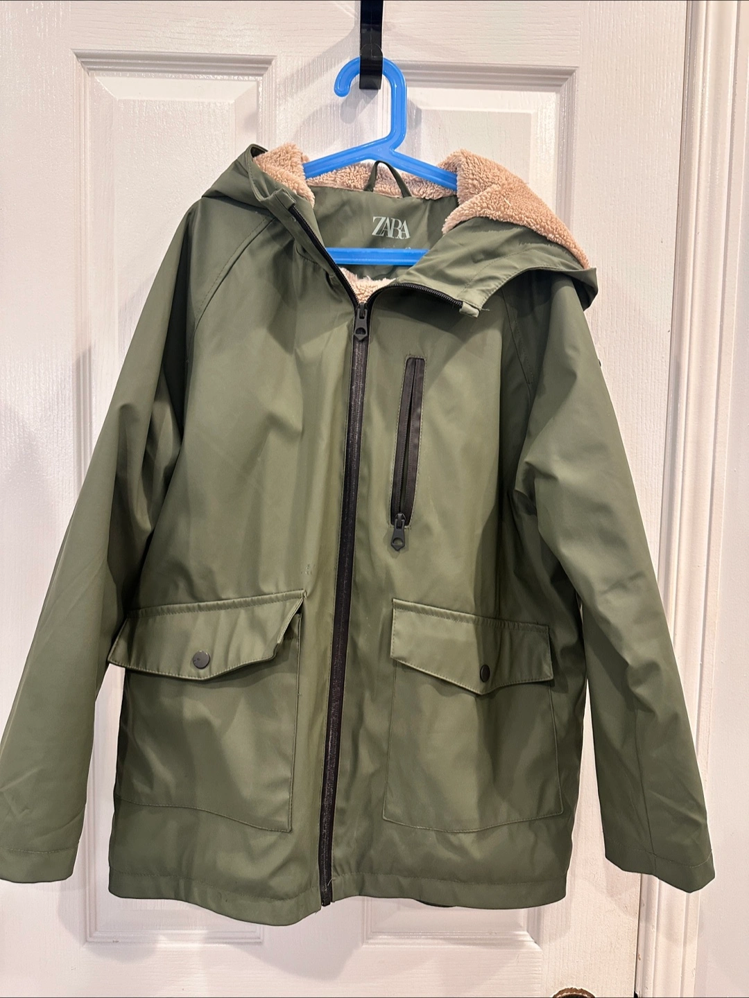 Zara Kids Olive Green Hooded Jacket Size 11-12