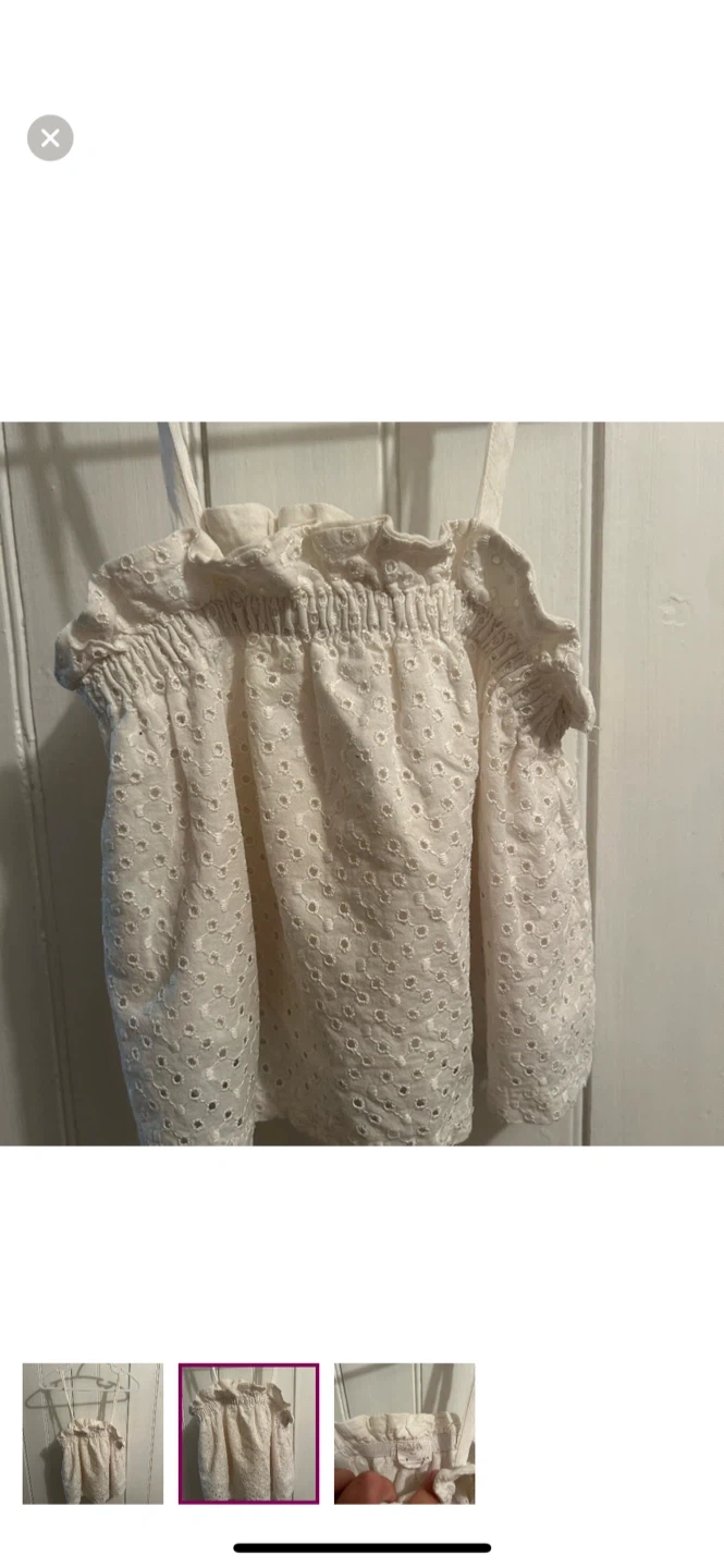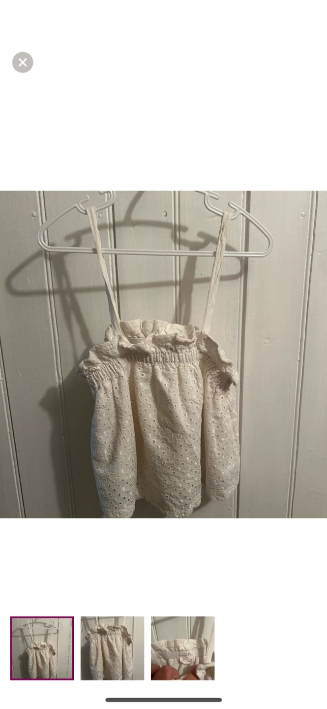 Zara brand. Spaghetti strap lace top. White in colour. Size 5, fits smaller imo. Brand new condition Pickup between kincardine & ripley or I can arrange delivery in port Elgin-Owen sound, walkerton-Durham, wingham-listowel-kw/cambridge, goderich-bayfield, Woodstock & Arthur-Orangeville-Newmarket-Lindsay-Peterborough AREAS.