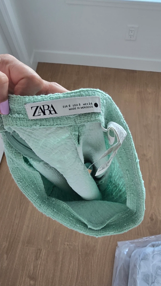 Selling a cute Zara skirt in a refreshing mint green colour! It's a size small and made in Morocco. Perfect for adding a pop of colour to your wardrobe. Selling because it is short for me. Weared just for once.
