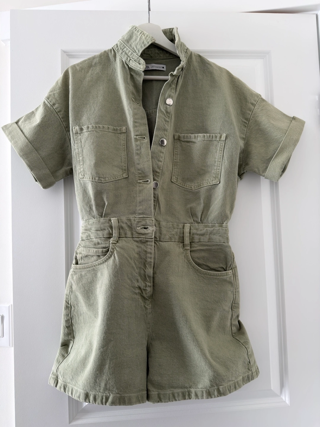 Selling a Zara romper in a lovely olive green colour! It's a size small and in great condition. Condition: perfect The material is comfortable and the fit is flattering. Don't miss out!