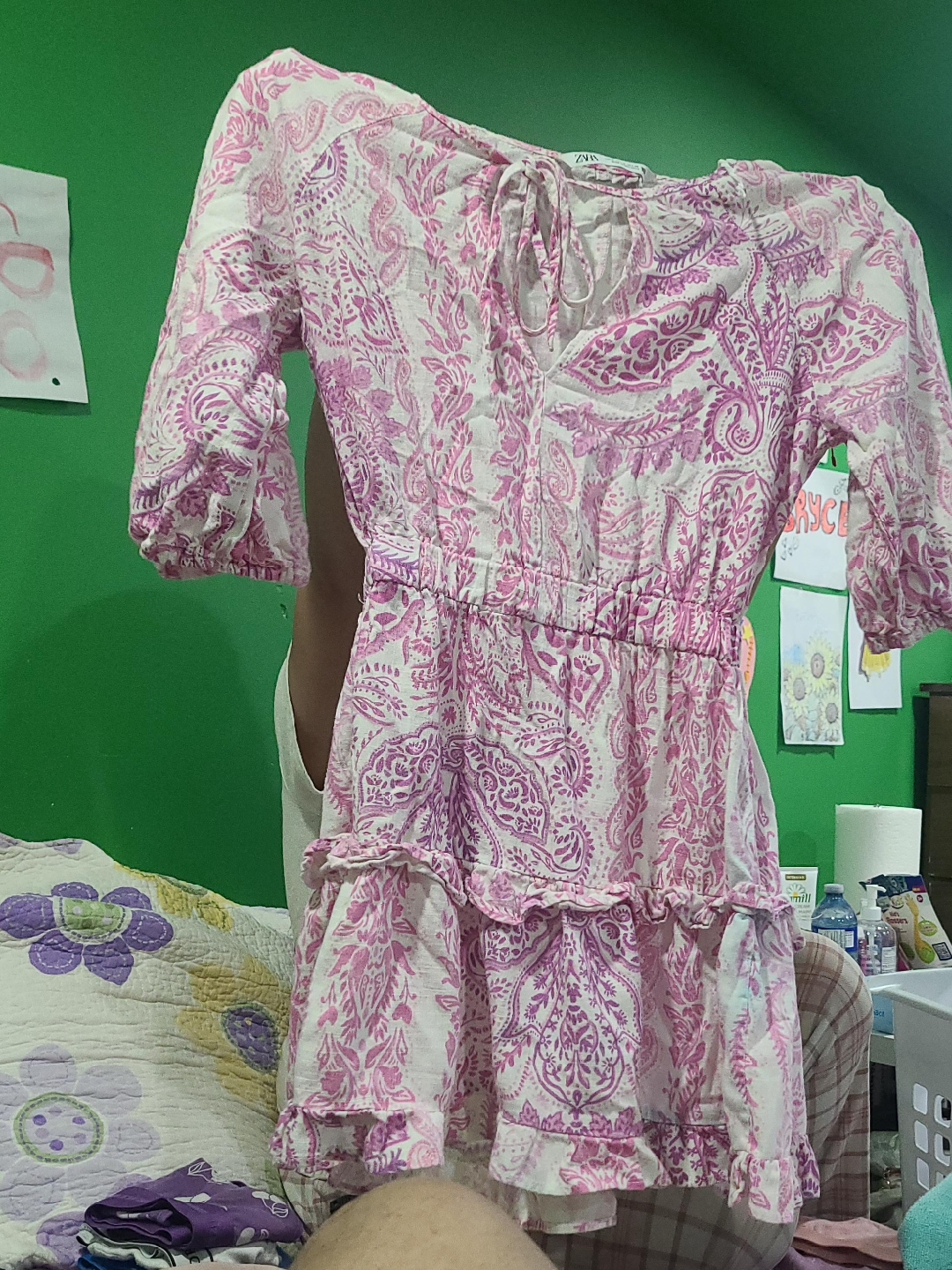 Selling a cute Zara dress with a pink and white paisley print. It's in great condition and perfect for summer!