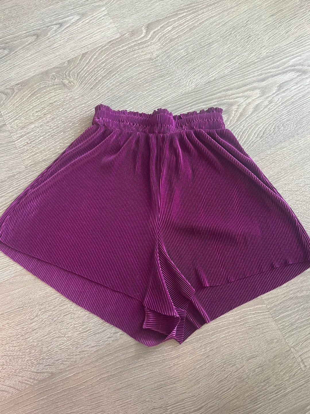Purple pleated/ribbed shorts. Elastic waistband.