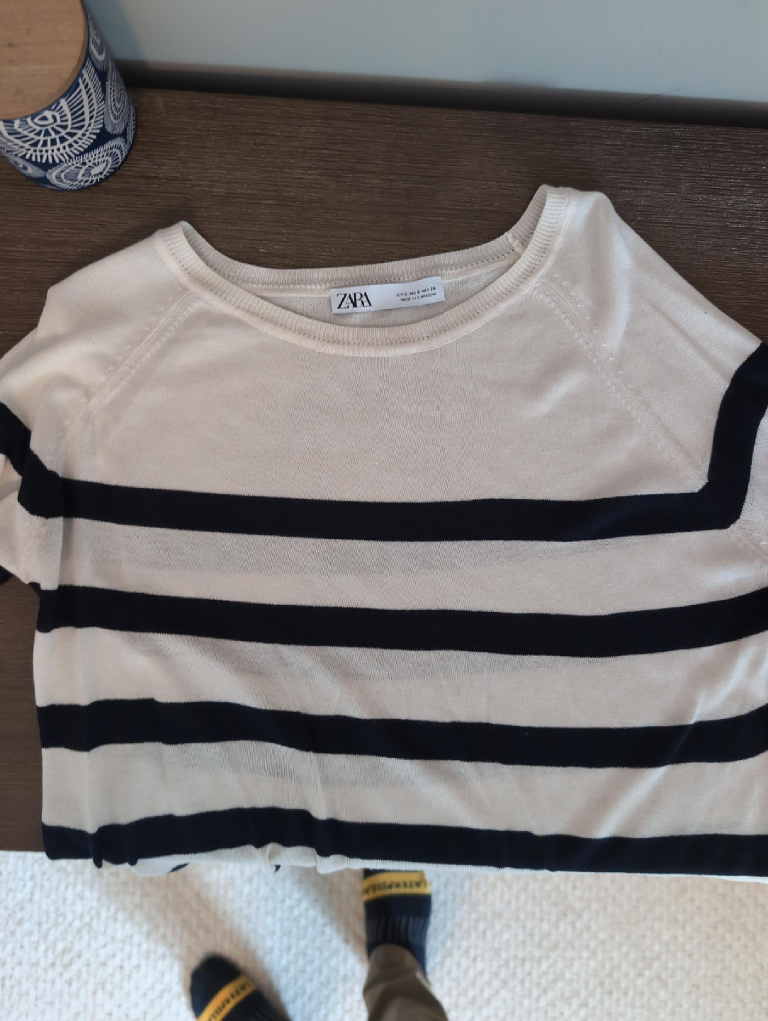 Selling a cute Zara knit top with a striped design! It's a size small and in great condition. Perfect for layering or wearing on its own