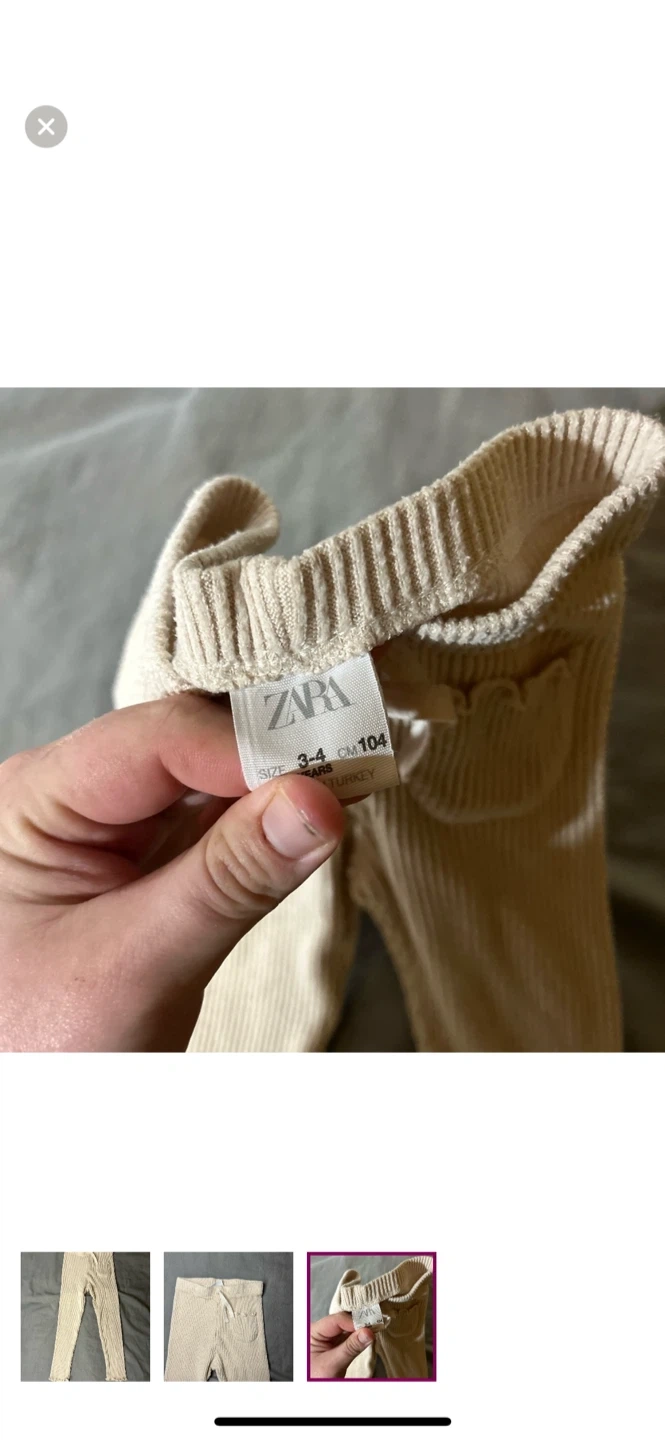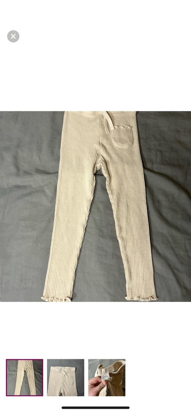 Zara brand. Tan ribbed knit leggings with scalloped edges. Size 3/4t. Brand new condition Pickup between kincardine & ripley or I can arrange delivery in port Elgin-Owen sound, walkerton-Durham, wingham-listowel-kw/cambridge, goderich-bayfield, Woodstock & Arthur-Orangeville-Newmarket-Lindsay-Peterborough AREAS.