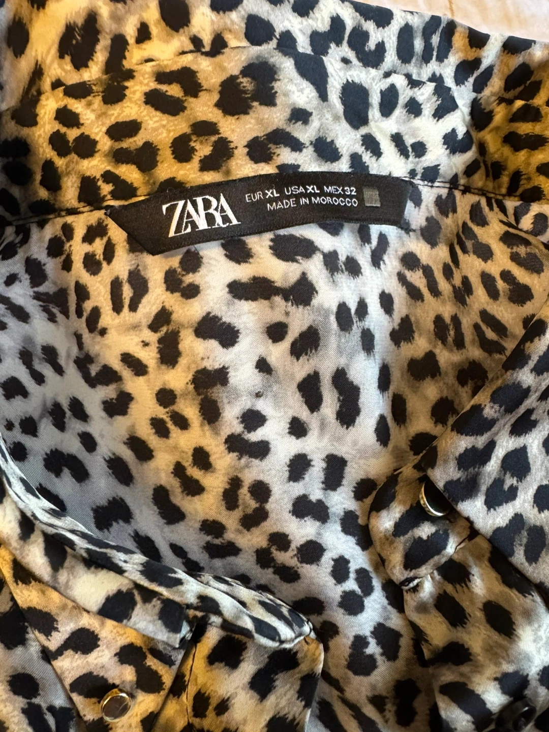 Selling a Zara button-up shirt in size XL. It's black and in great condition! Perfect for a night out or a casual day at the office. Feel free to reach out if you have any questions!