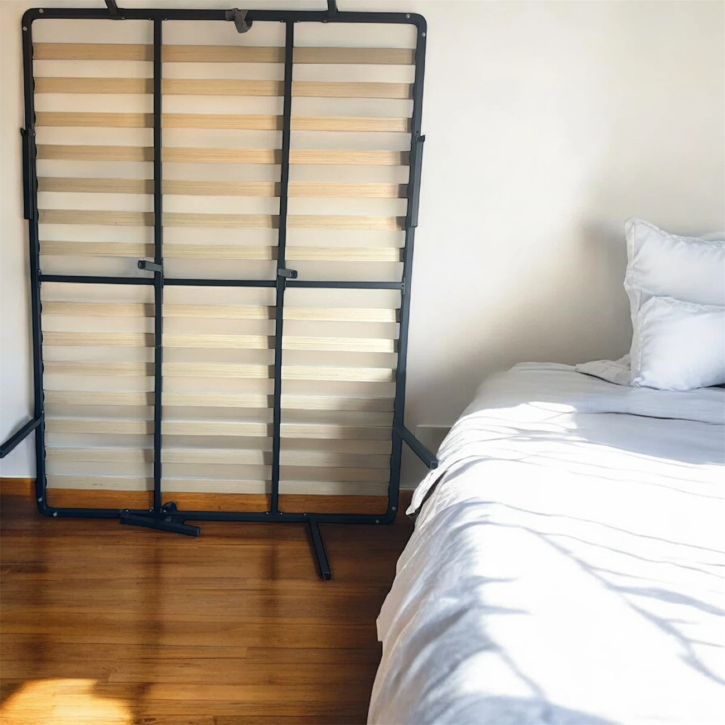 Folding Room Divider - Black Frame, White Panels