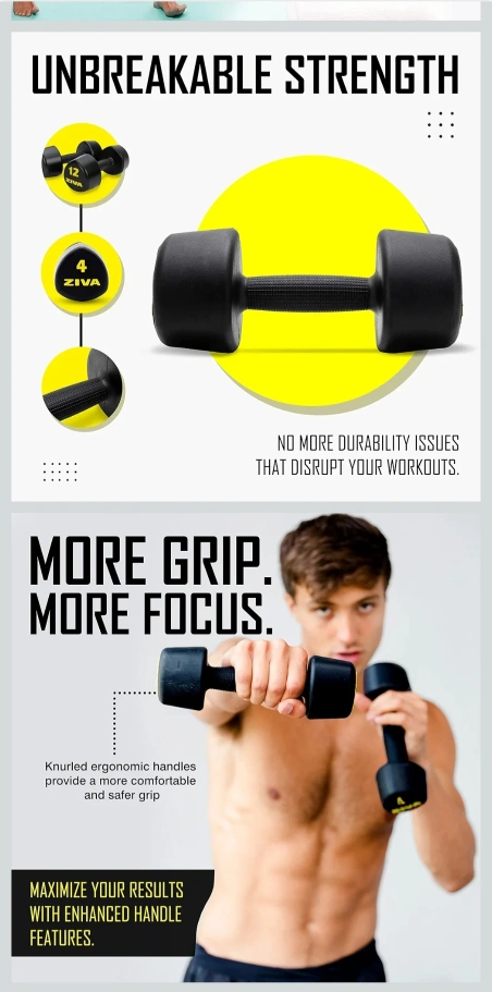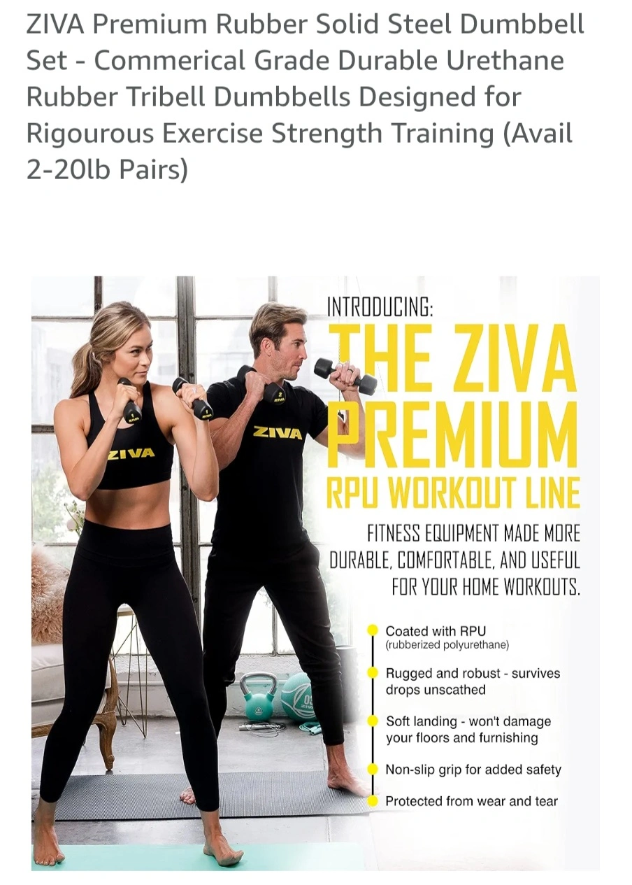 ZIVA Premium Rubber Solid Steel Dumbbell Set - Commerical Grade Durable Urethane Rubber Tribell Dumbbells Designed for Rigourous Exercise Strength Training.