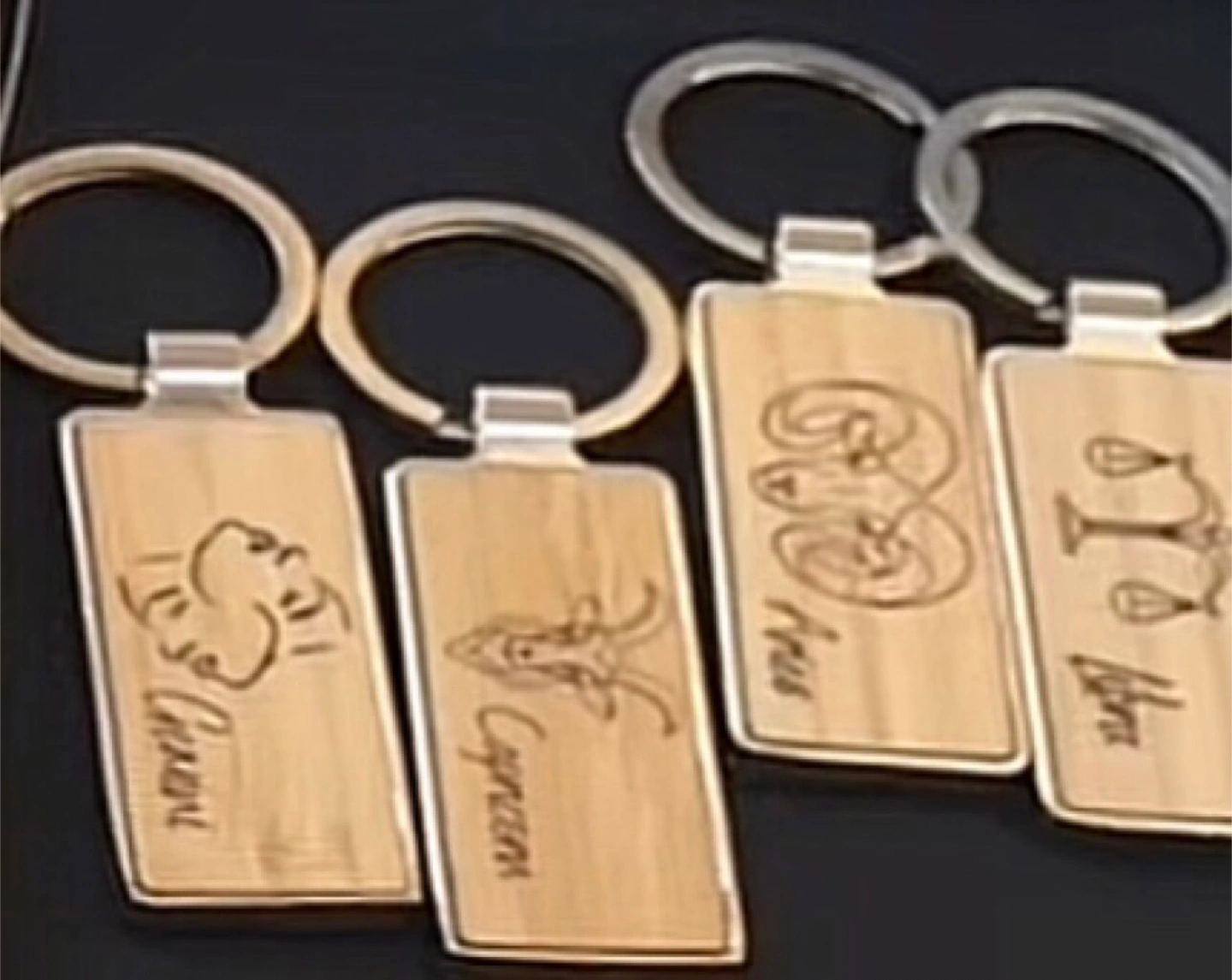 Selling these cute zodiac sign keychains! They feature different zodiac signs engraved on a wooden-like surface. Perfect for adding a personal touch to your keys or as a small gift for someone special