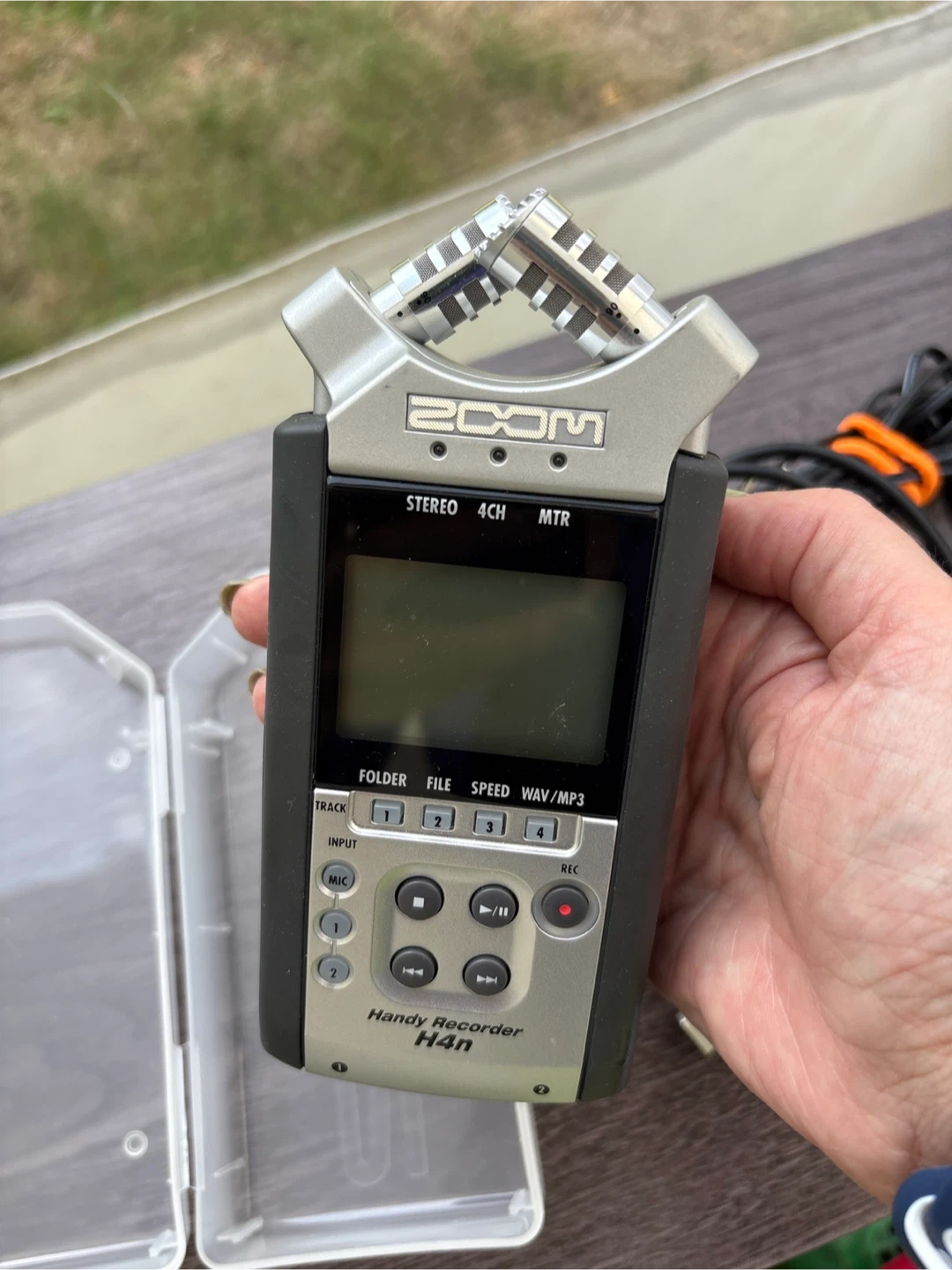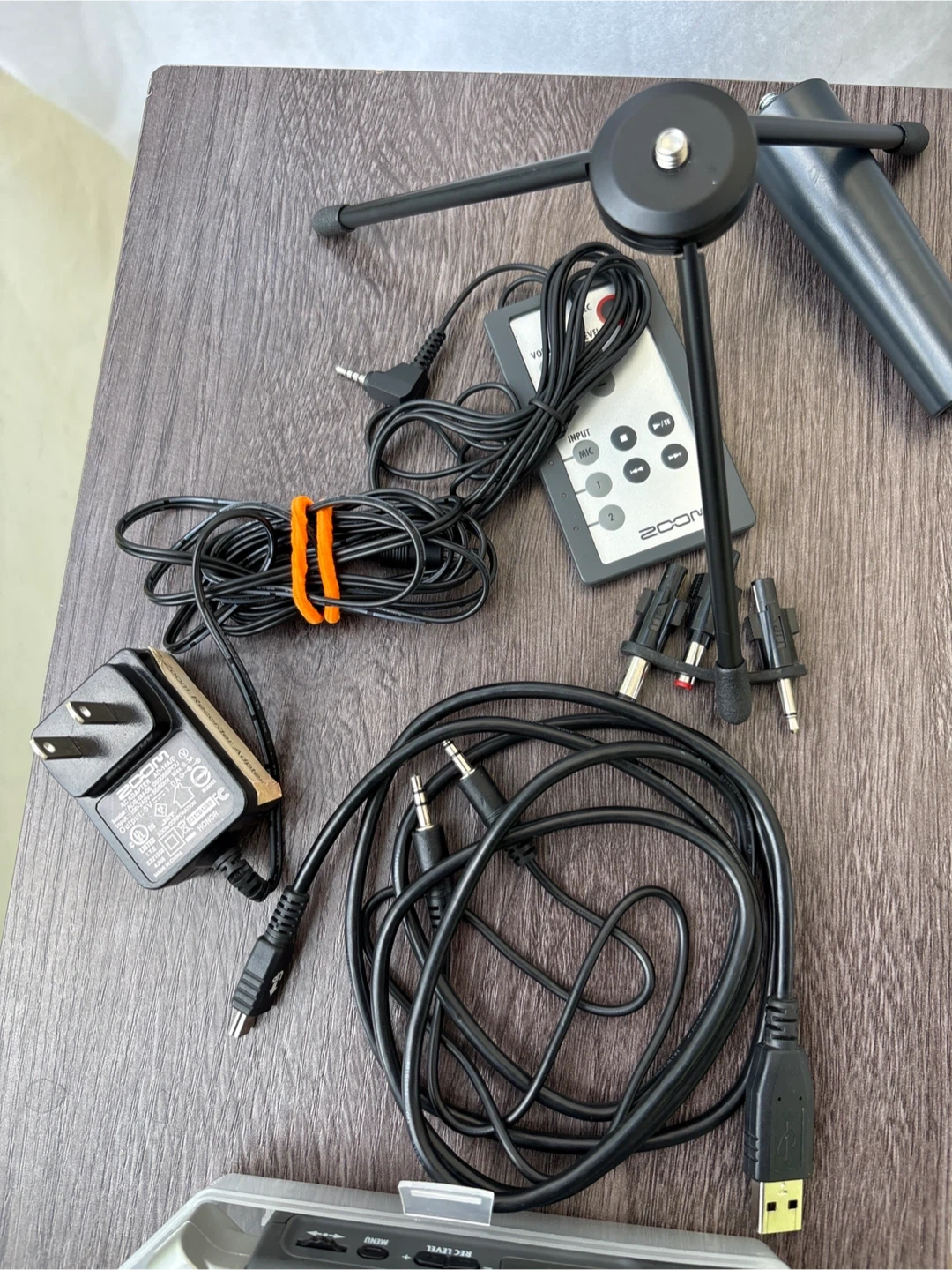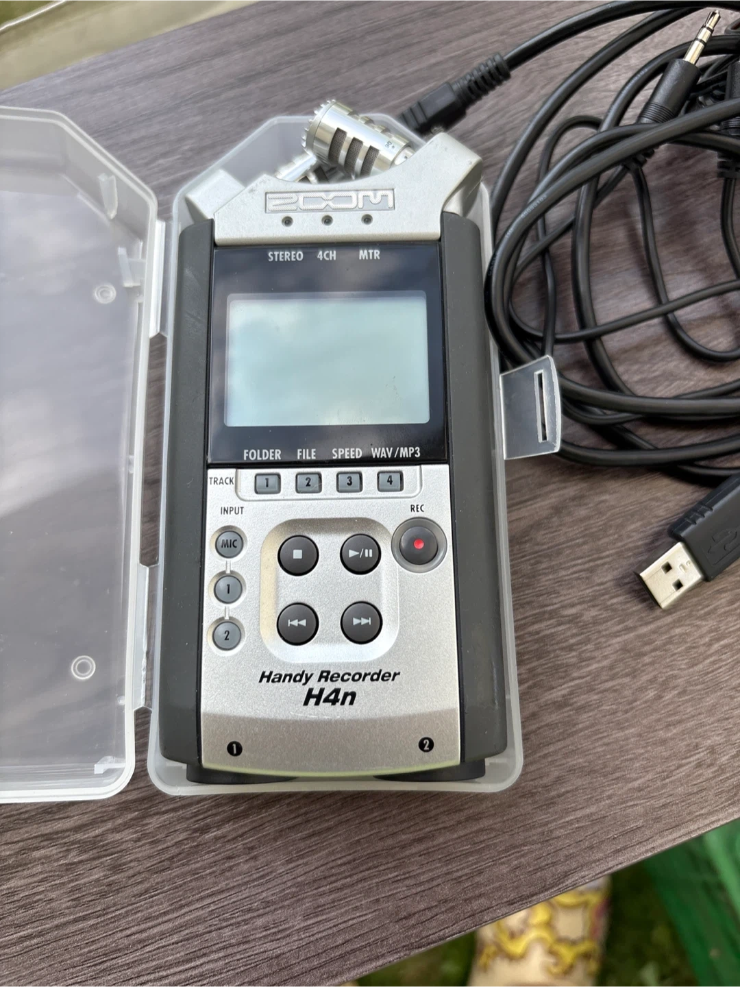 Selling a Zoom H4n Handy Recorder. It comes with a variety of accessories, including cables, a stand, and a remote. Great for recording music, podcasts, or lectures. The recorder is in good condition and ready to use!
