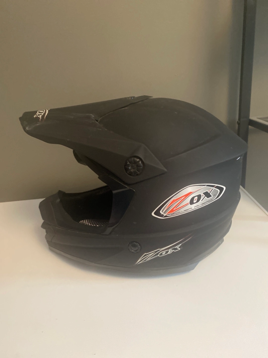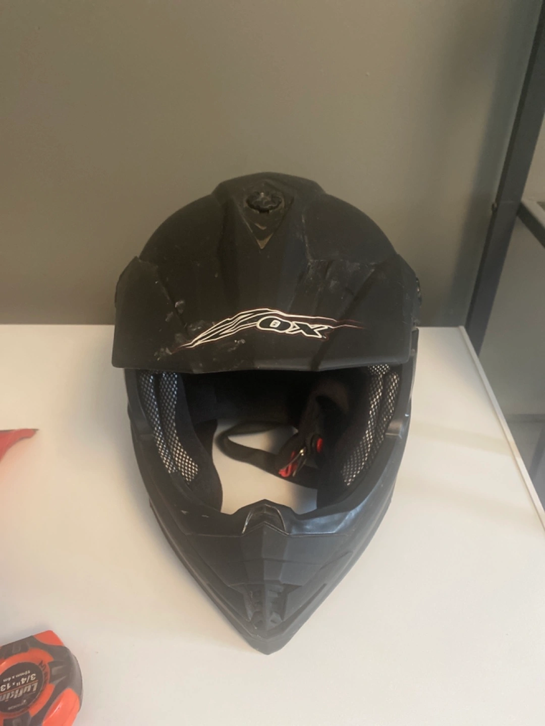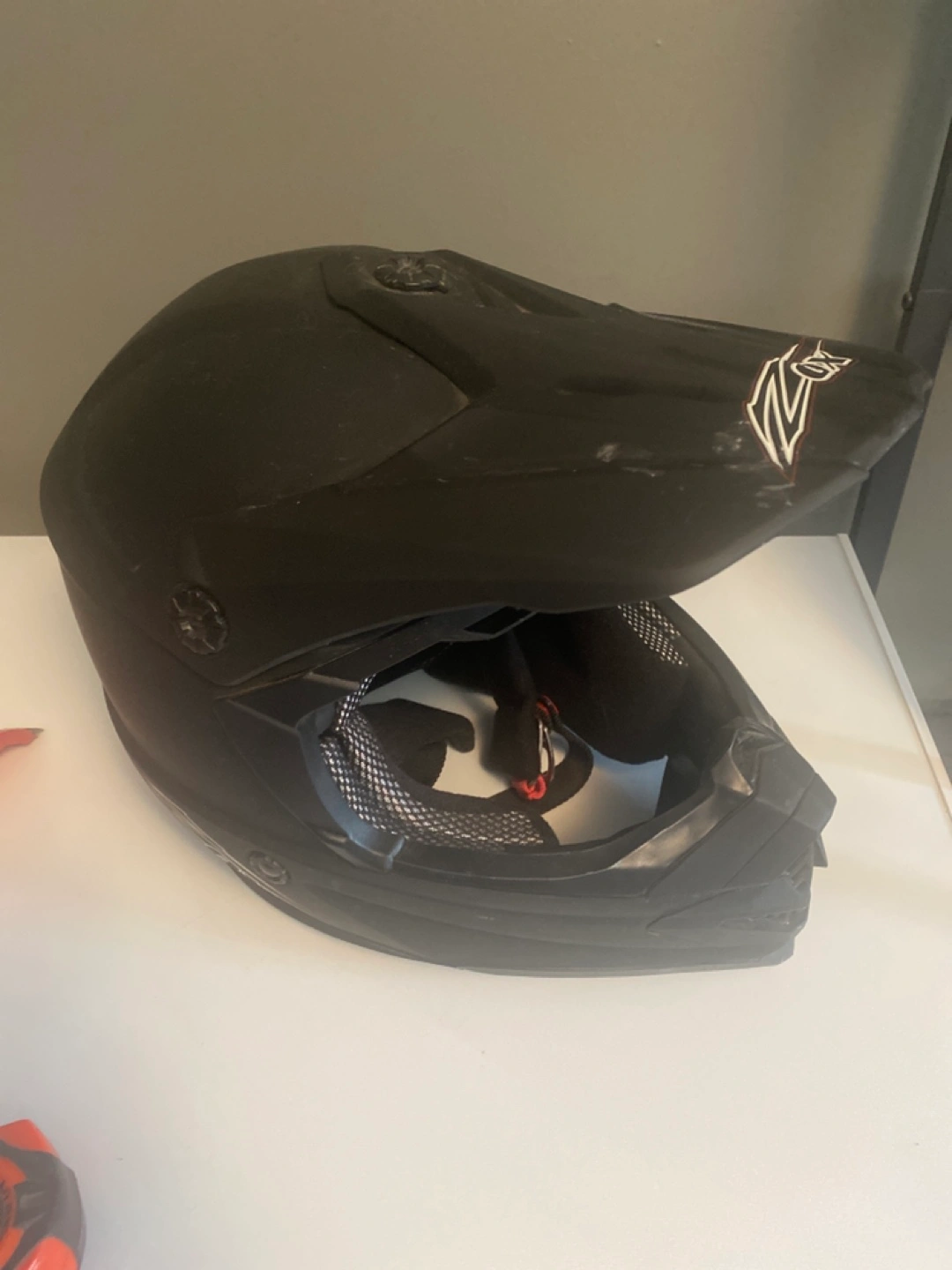Black motocross helmet. Used condition. Shows some wear. Adult size.