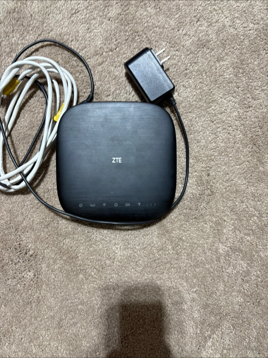 Selling a ZTE router in good condition. Includes the power adapter and ethernet cable.