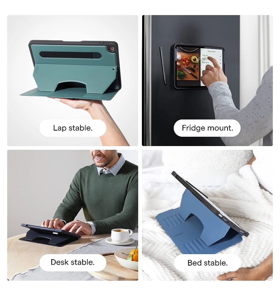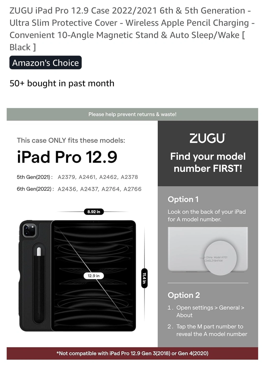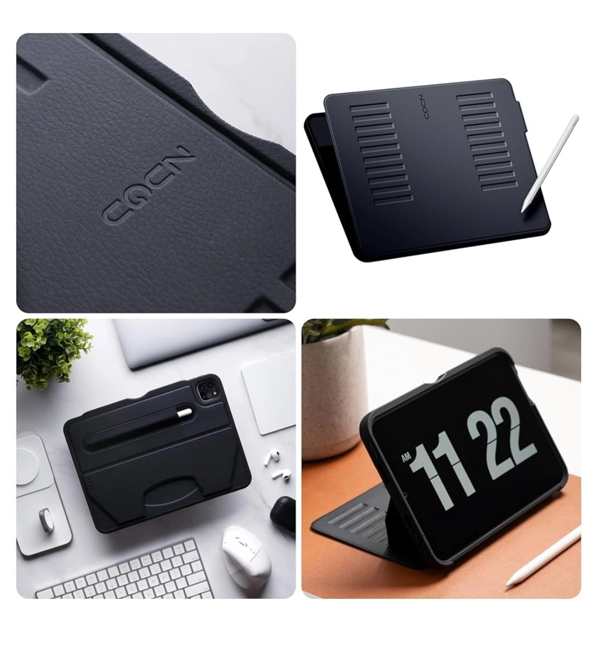 Black iPad Pro 12.9 case with built-in pencil holder and magnetic stand. This case is compatible with the 5th and 6th generation iPad Pro. The case offers multiple viewing angles.