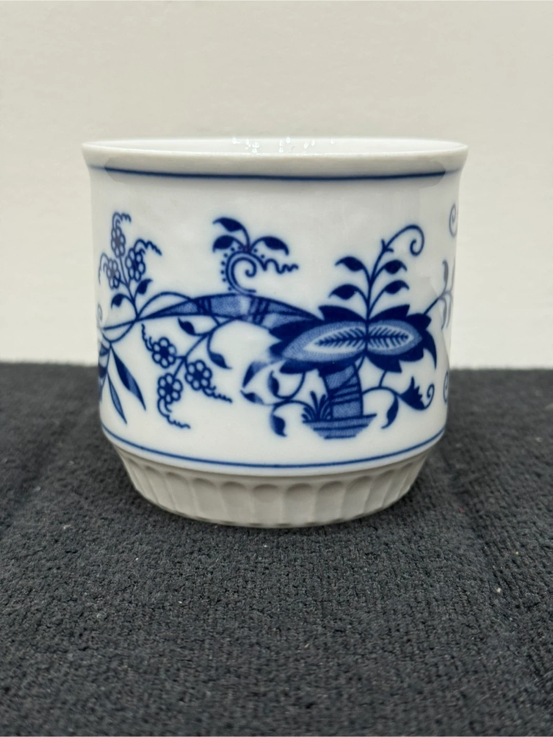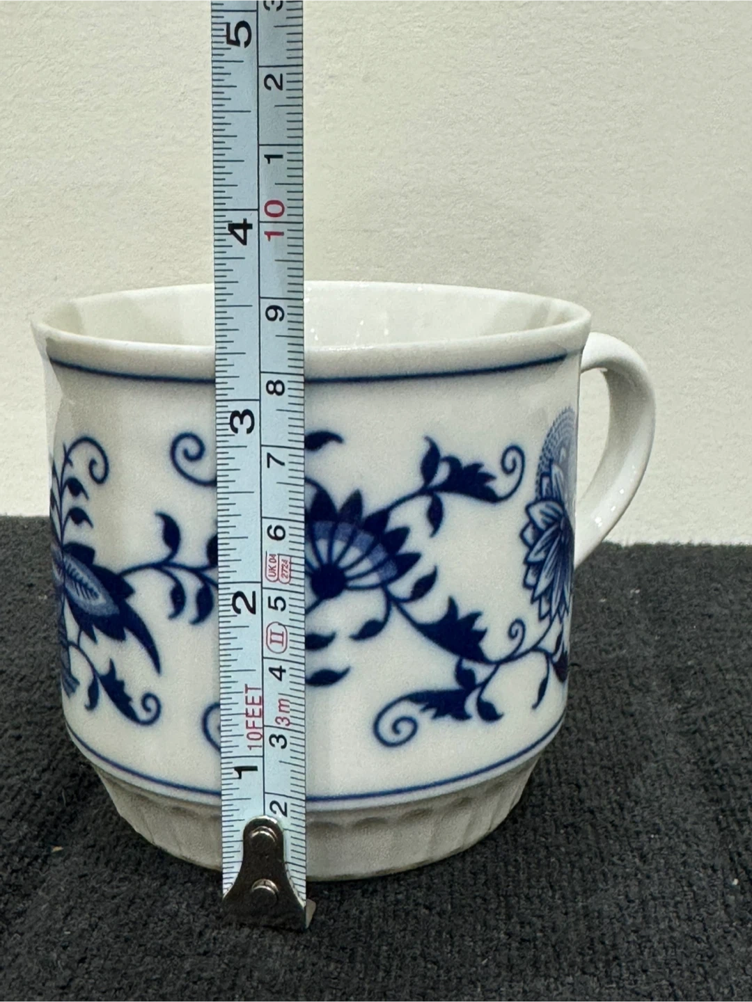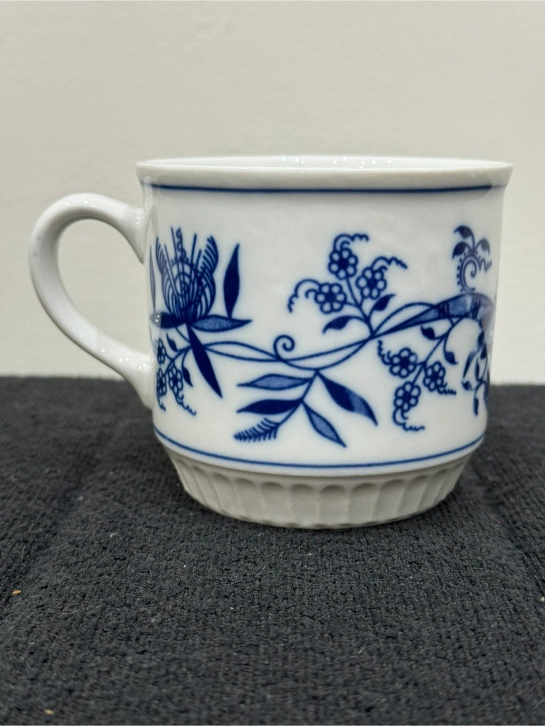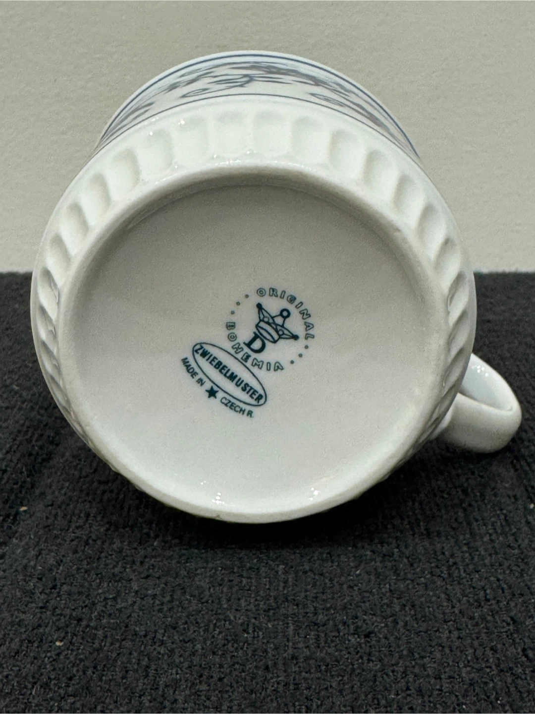 Here's a lovely Zwiebelmuster Bohemia mug made in Czech Republic! It features a classic blue and white floral pattern. Perfect for your morning coffee or tea!