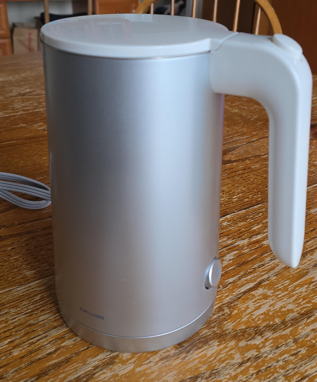 Selling a Zwilling electric kettle in silver! It's in great shape and ready to heat up your water quickly and efficiently. Perfect for tea, coffee, or anything else you need hot water for. The kettle is a stylish addition to any kitchen countertop