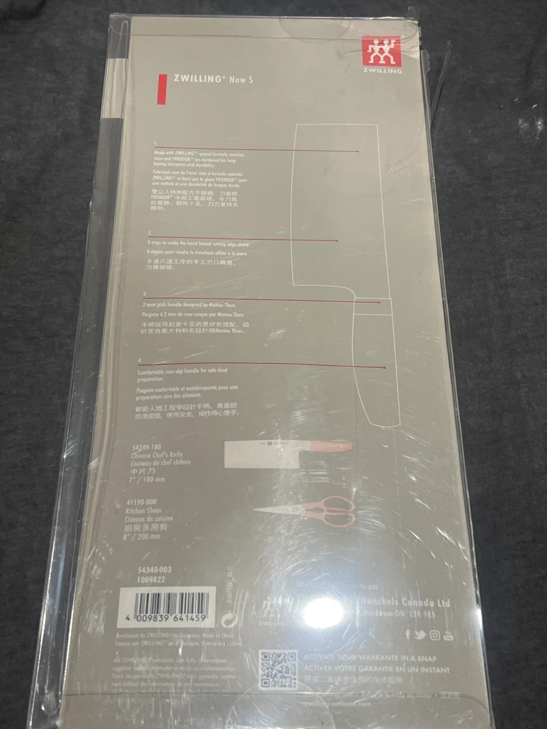 Selling a Zwilling Now S set that includes a chef's knife and kitchen shears! The knife is 8"/200 mm. Originally bought for $59.99. Comes in the original packaging