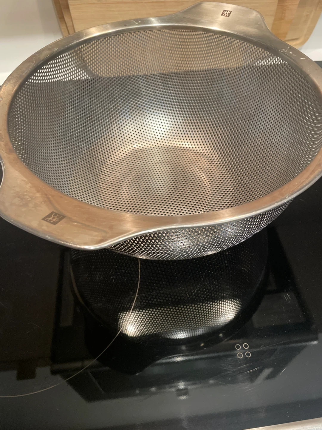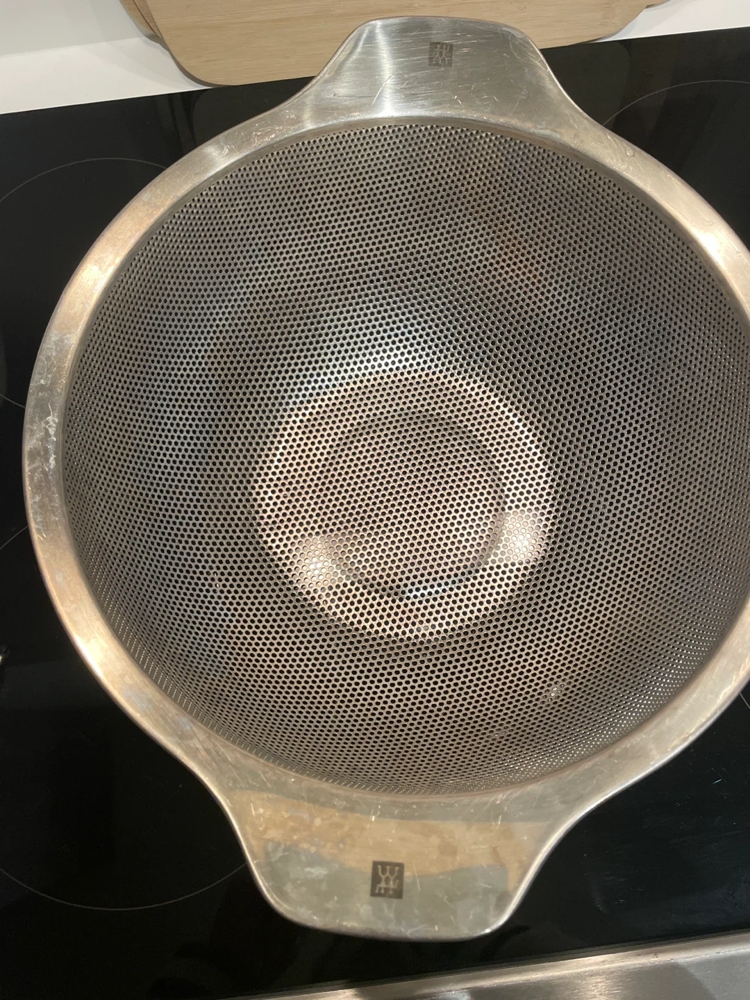 Selling a Zwilling stainless steel colander. It's in great condition and ready for a new home! Perfect for rinsing fruits, vegetables, or draining pasta. This colander is durable and easy to clean, making it a great addition to any kitchen