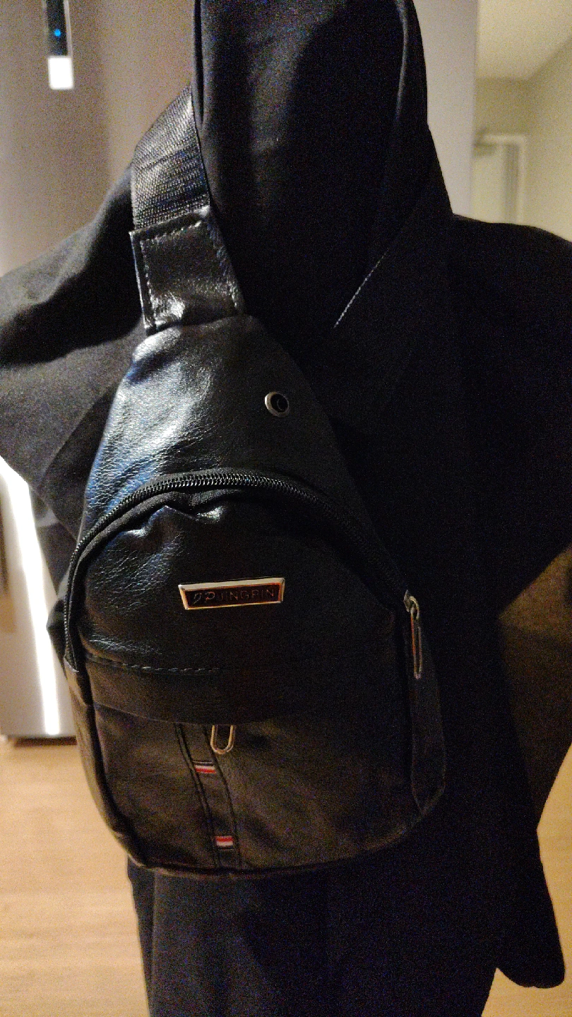 Here's a stylish black leather sling bag by Zzngrin. It's in great shape and ready for a new home! Perfect for carrying your essentials while keeping your hands free