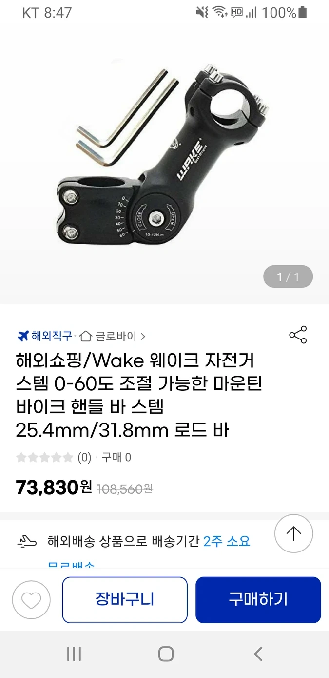 각도 조절 자전거 스템 ㅡ Wake 길이 90mm, 회전각 60도 핸들바 직경31.5 새것입니다