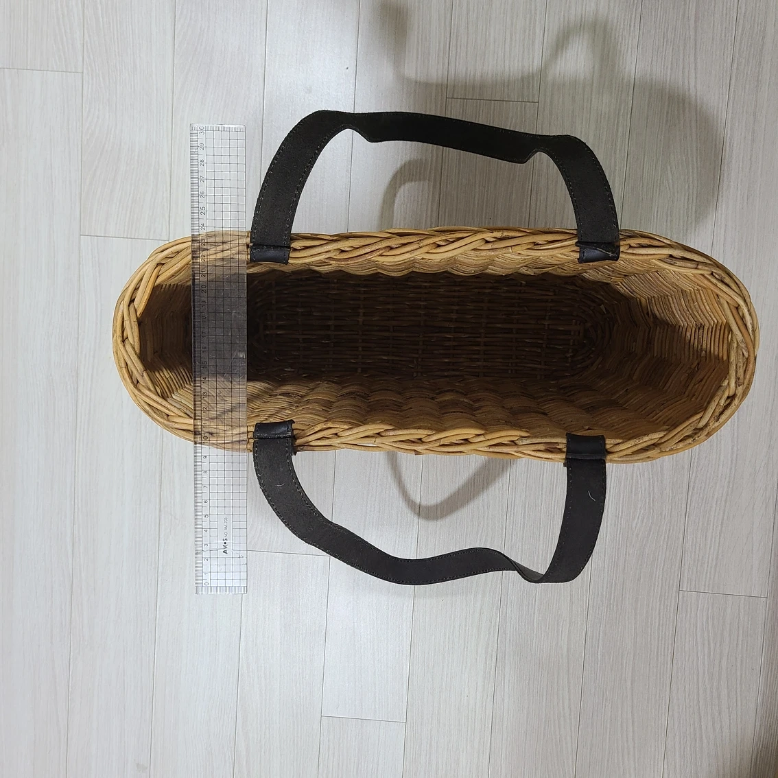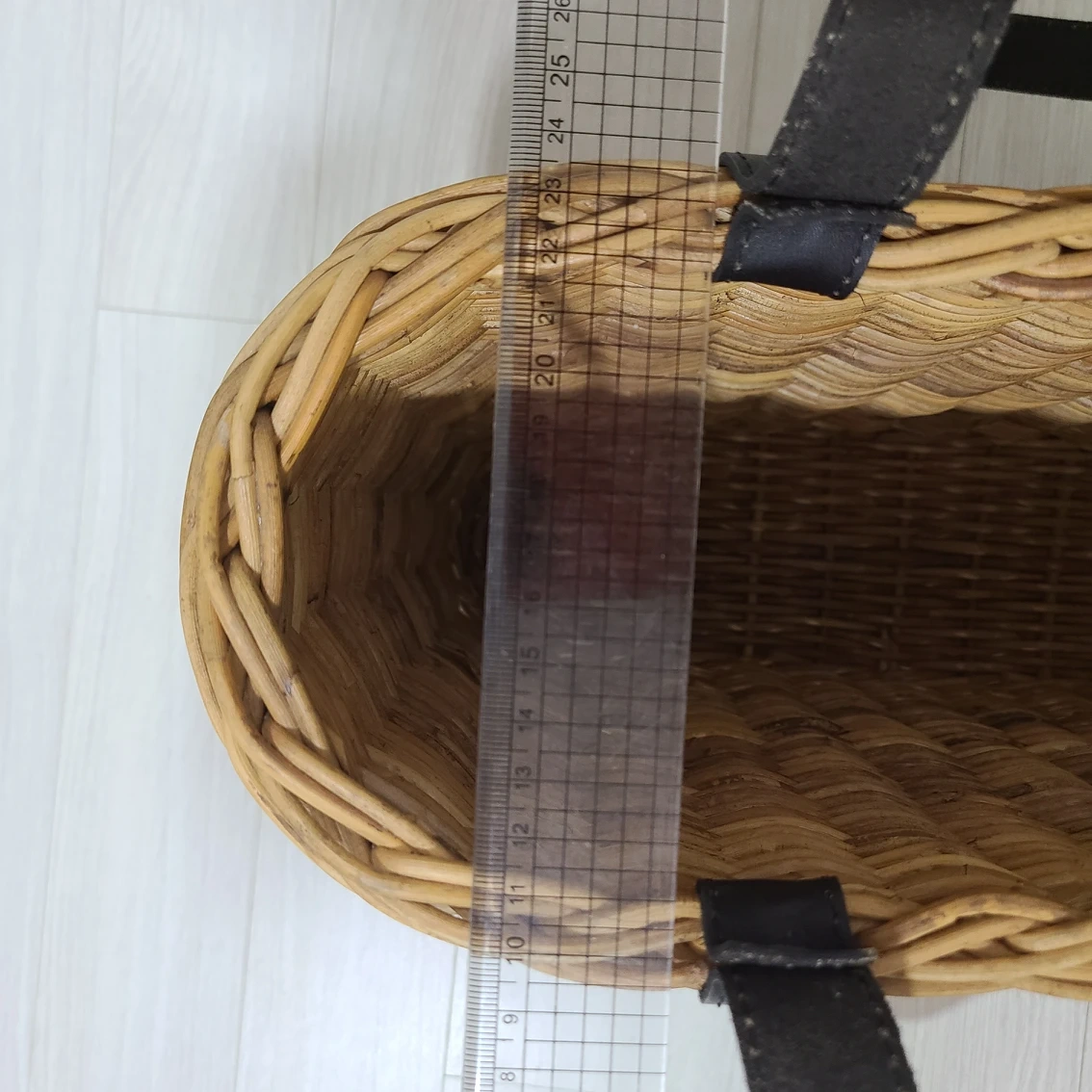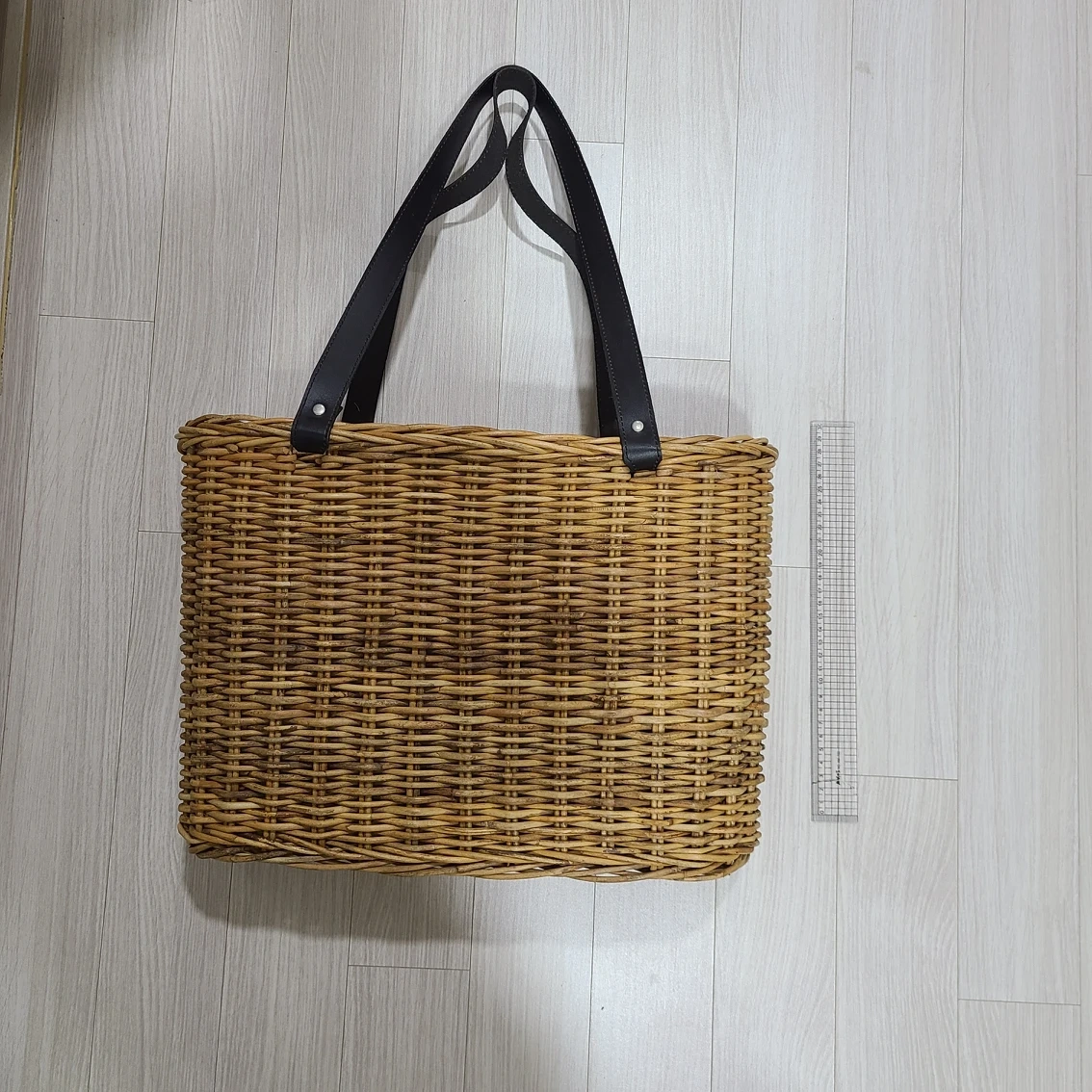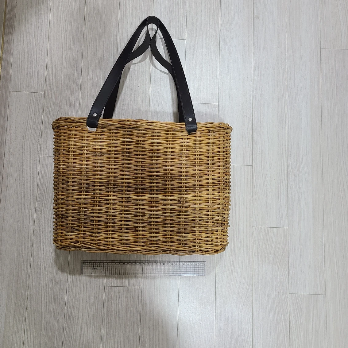 홍등라탄가방이예요. 사이즈 사진에 30cm자로 표시되어 있어요. 공방에서 장식용으로 사용해서 사용감없습니다.