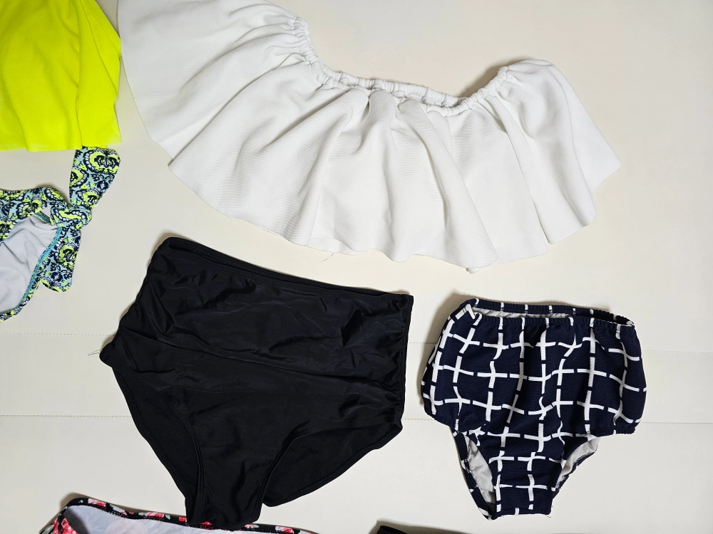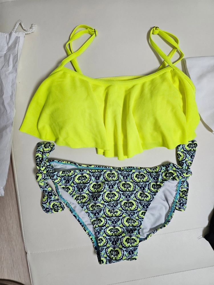 세교동 아니고 고덕입니다 1번 비키니 6,000원 2번 비키니 상의+팬티 4개 6,000원 따로 구매하셔도 되고 일괄하시면 10,000원에 드릴게요 상의 44~44반, 하의 26~27사이즈 입으시면 잘 맞으실거에요 저 168에 47~49키로때 입었어요 꽃무늬 수영복팬티만 새거고 다 1번씩만 입은거라 상태 매우 좋아요! 꼭 구매하실분만 챗 부탁드립니다 중고거래 특성상 교환환불 안되구요 직접 가지러와주셔야해요 당근페이로 선입금해주시면 상세주소 알려드릴게요 문고리거래하겠습니다 고덕호반써밋3차입니다