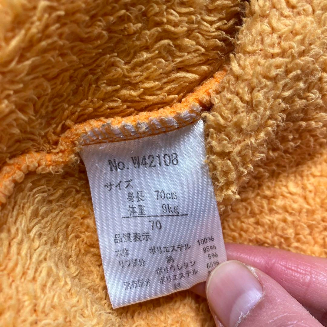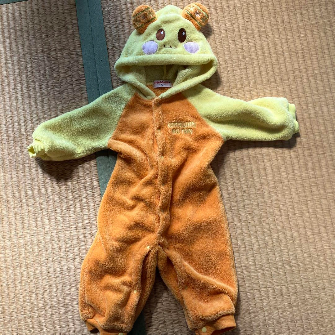 うーたん 着ぐるみ フリース 70cm サイズアウトした為出品します! ラベルにイニシャルの記載があります(写真参照) 【デザイン】 この着ぐるみは、フリース素材で作られており、うーたんのフードが特徴です。 【機能性】 スナップボタン式で着脱が簡単。 【用途】 カバーオールとしてはもちろん、コスチュームとしても最適です。特別なイベントやハロウィンにぴったりのアイテムです。 #うーたん #いないいないばあっ! ご希望の方はお気軽にご連絡ください。
