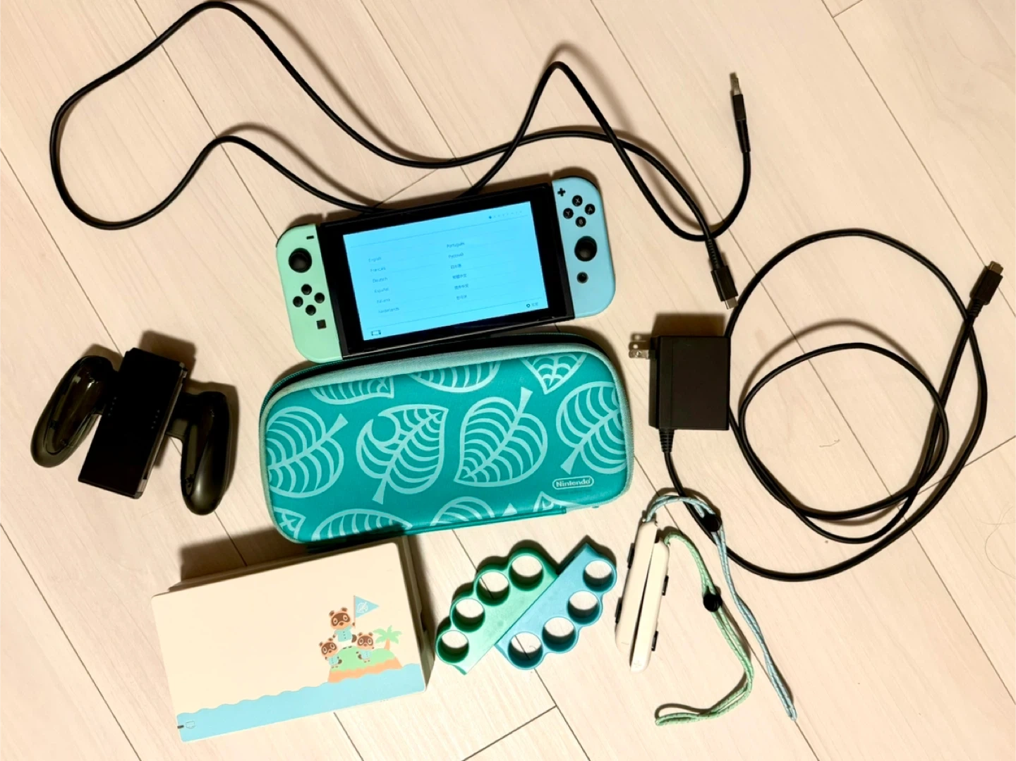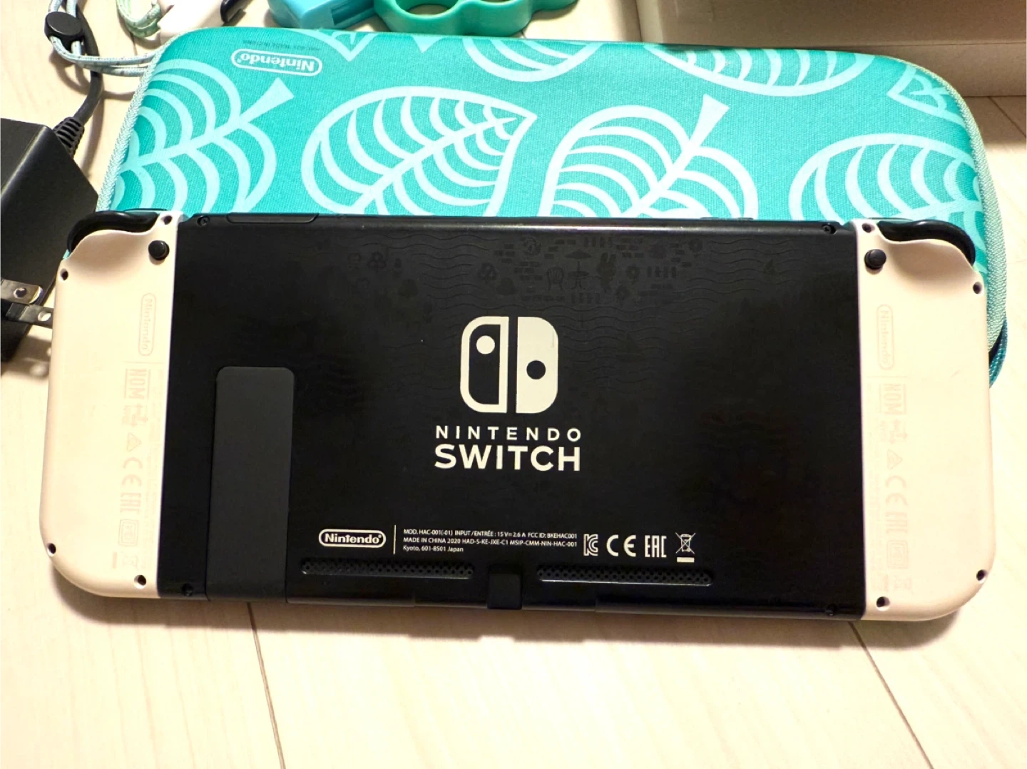 あたたかさニンテンドースイッチ あつまれどうぶつの森 editionです。 【情報】 ブランド:ニンテンドー 商品:スイッチ本体 あつまれどうぶつの森デザイン カラー:グリーン、ホワイト 本体初期化済み 【状態】 小さな割れあり(写真参照) 使用感少なめ ジョイコン右のRボタンが反応しません。 普段使いには良いかと思いますが、この点ご了承ください。 ペット喫煙なし 日焼けの変色なし 初期化しているためソフトはありません。 【付属品】 箱、充電器、ケース、ボクシング用のグリップ、その他付属品あり(写真参照) 中古品であることご了承ください。 大倉山駅、菊名駅、新横浜駅でのお渡しも可能です。 9/25値下げしましたー。 もし大倉山の近くまで取りに来ていただけるなら、上記の他に、スプラトゥーンカラーのコントローラーもお渡しします。こちらは傷もほとんどなく、ボタンスティックに異常ないです。本体のコントローラーと交換すれば十分に遊べます。