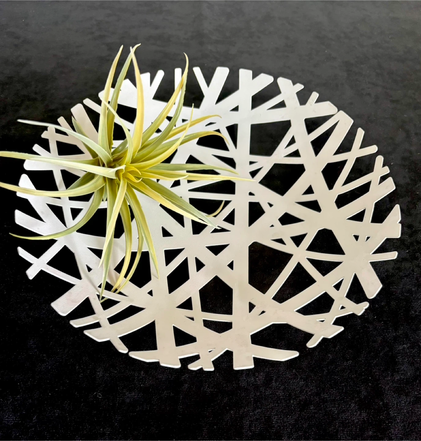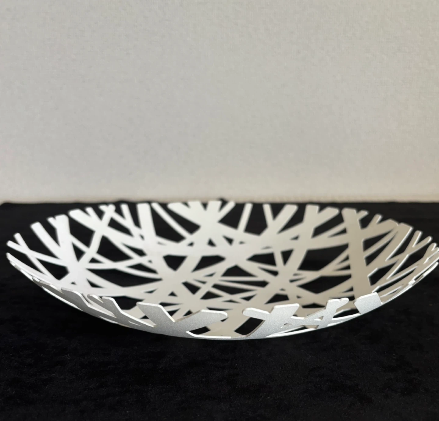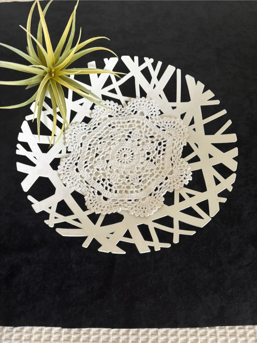 モダンなストライプデザインのオープンボウルです。テーブルやキッチンのインテリアに素敵かもしれません。 おまけとしてレースのドイリー(中古)お付けします - 形状: オープンボウル - 直径: 約26cm - 高さ: 約4.5cm - デザイン: モダンなストライプ模様 自宅保管品、中古品になります。よく見るとわずかに変色が見られます。 ご理解ある方にお譲りします、 造花は撮影小物です、付属しません。 #カゴ #モダン #アイアン #白 #テーブル #キッチン #テーブルインテリア #キッチンインテリア