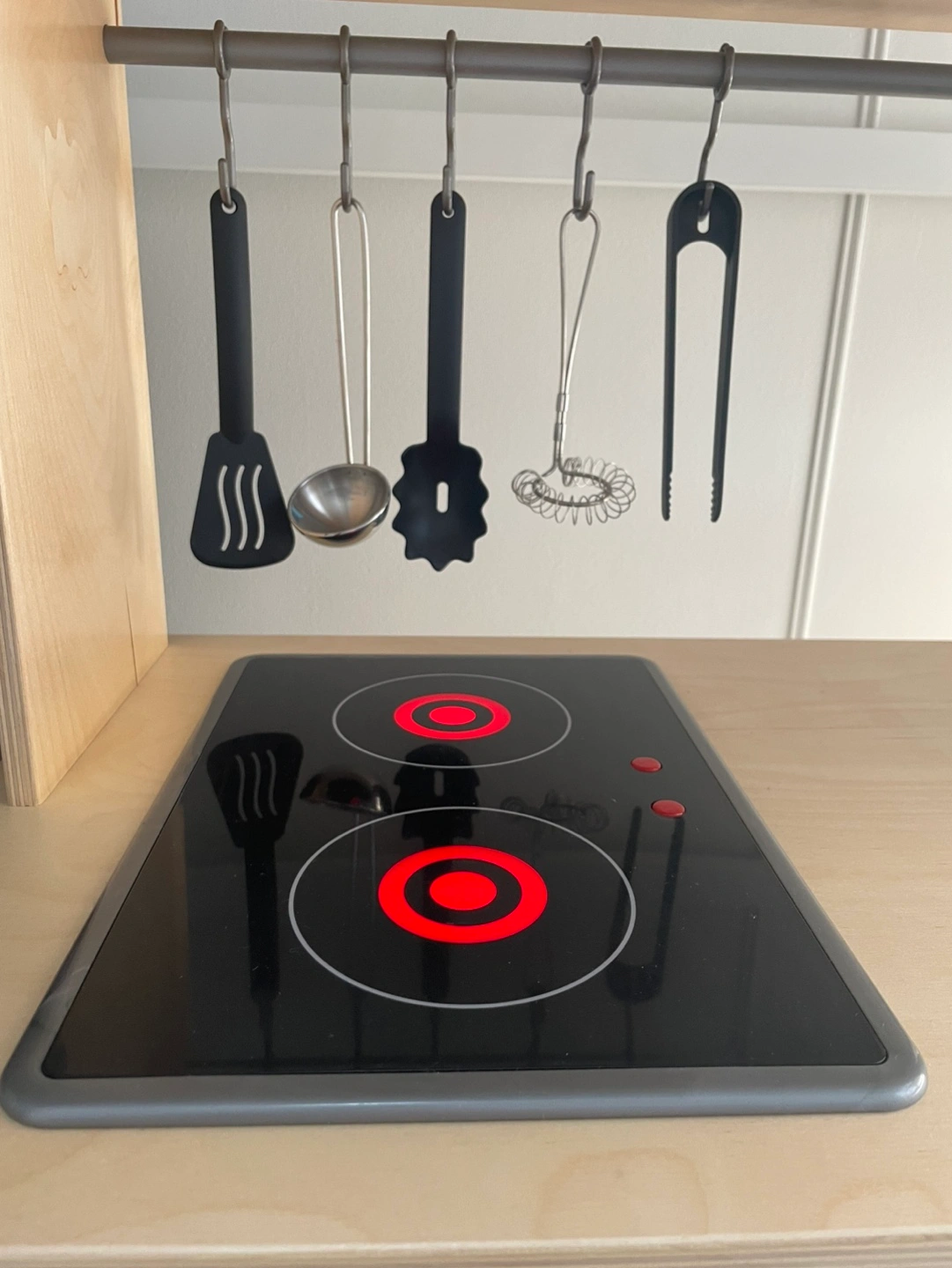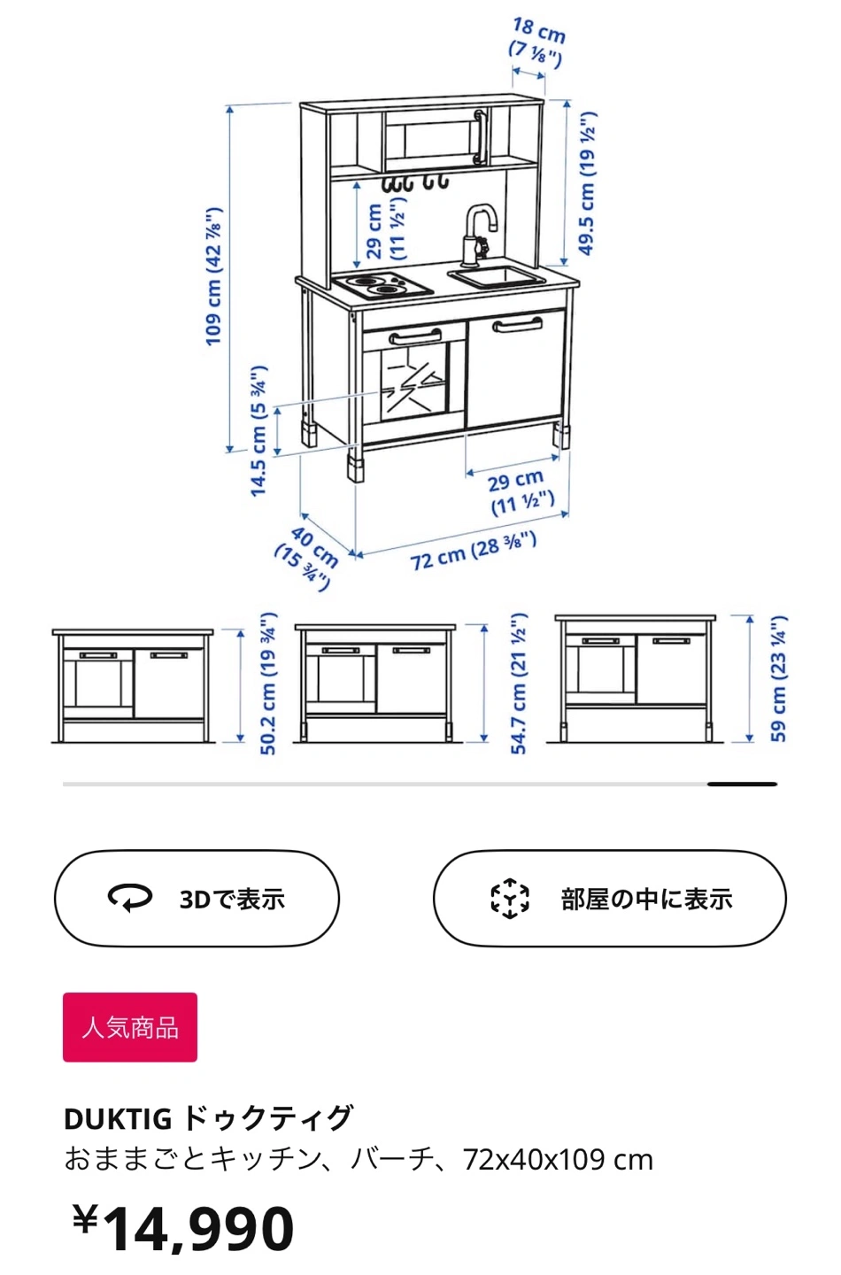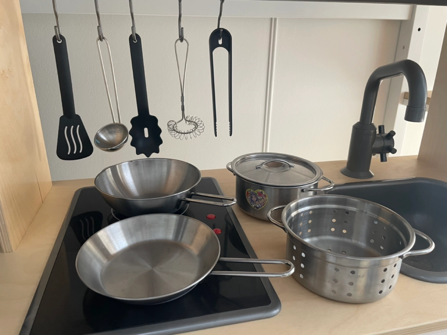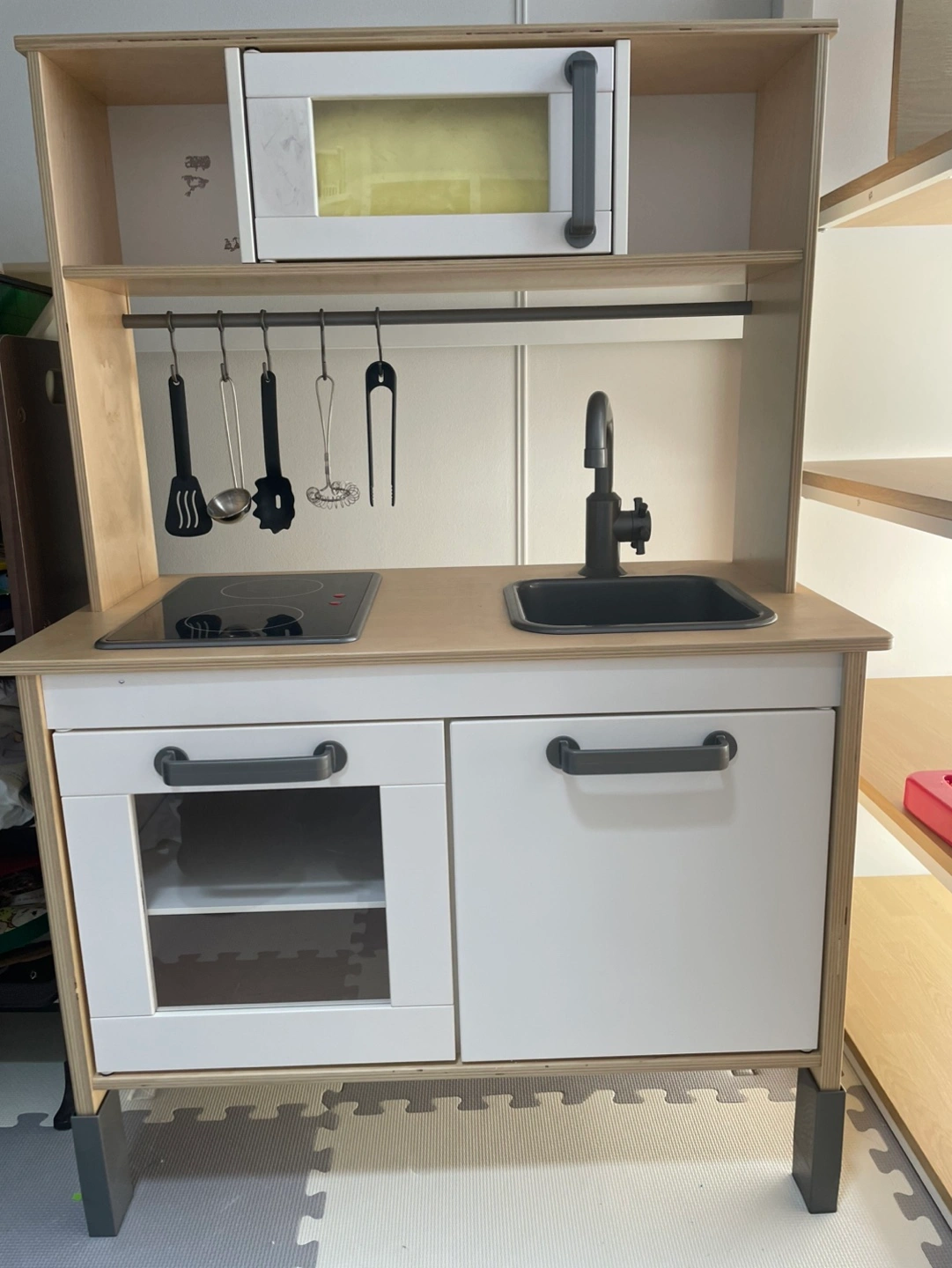 IKEAのDUKTIG ※1枚目上段オーブンの部分は反射するので黄色の紙を入れて撮影しています。 ・左上に剥がれた部分があります。 ・オープンのドアの部分に汚れがあります。 そのほかは綺麗な状態かと思います。 トングやピザなどの備品も含めた金額です。 動物の飼育なし、喫煙者なしの環境で保管しています。 他の媒体にも掲載しているため突然受付終了する可能性がございます、ご了承下さい。