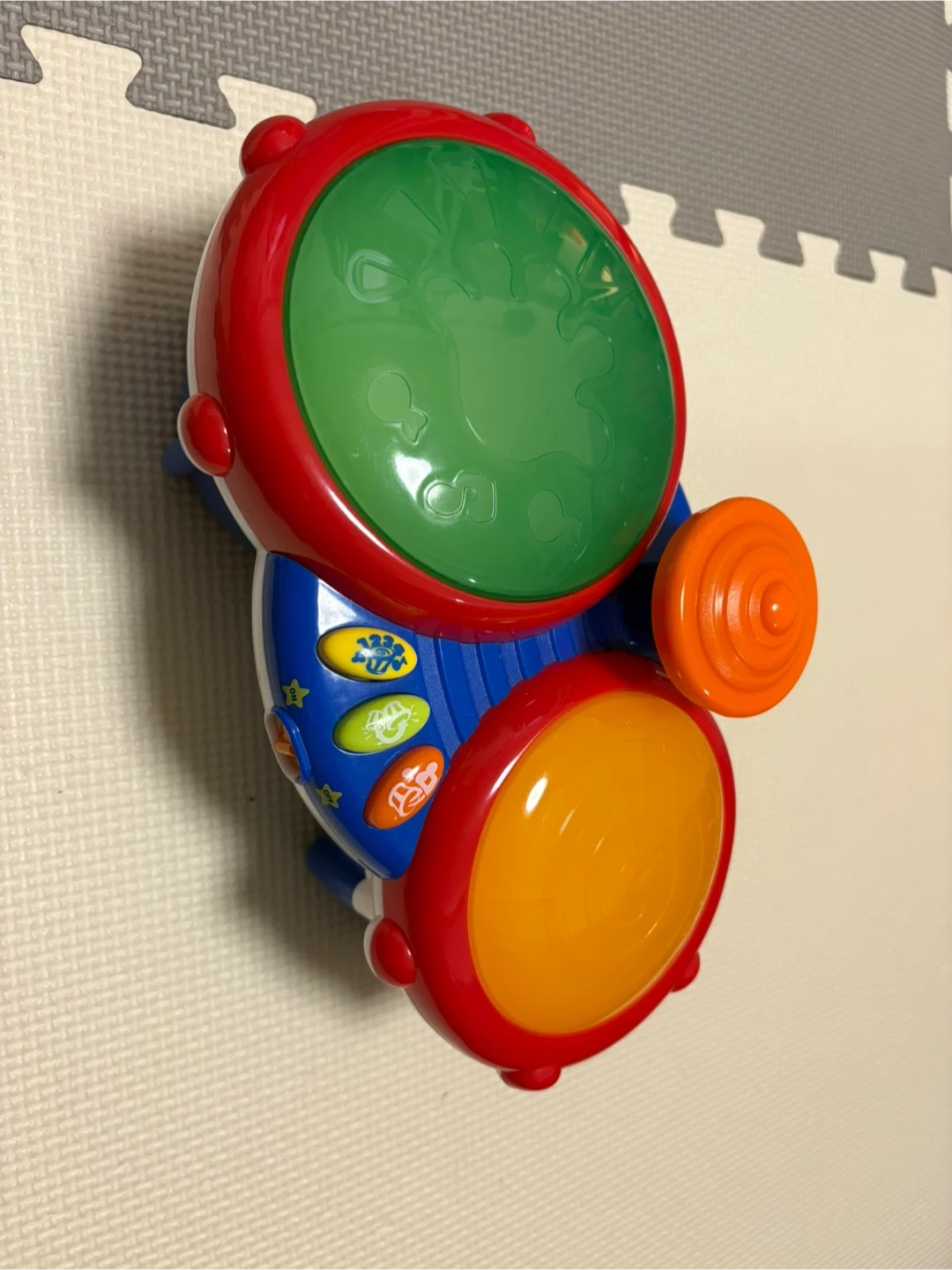 子供用のおもちゃのドラムセットです。 ・色:赤、青、緑、オレンジ ・あまり使用感がなく、おもちゃ箱に眠っていました ・電池は入っていません。 中古品であることはご了承ください