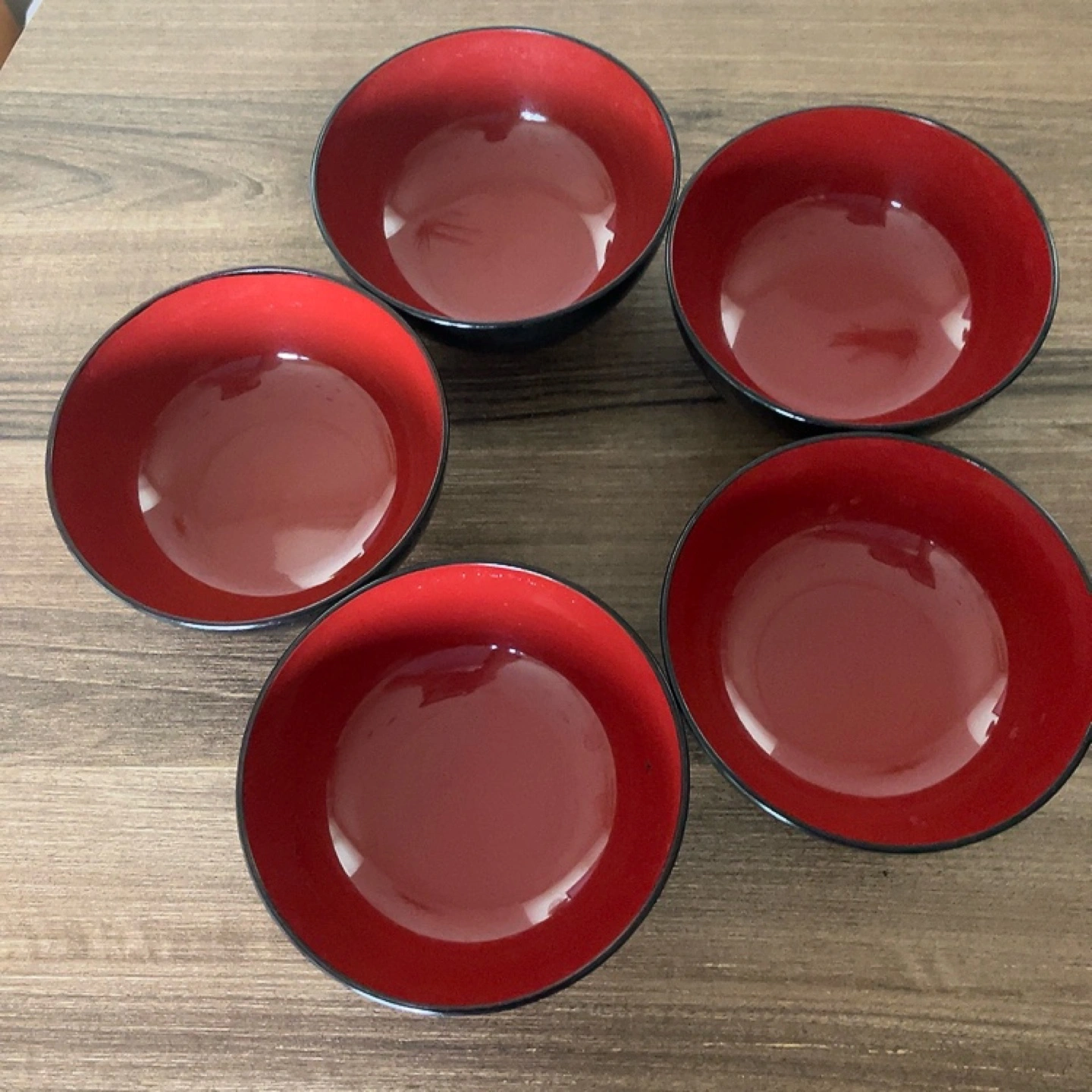 ⭐️ご覧いただきありがとうございます⭐️ ■商品説明 : ・お椀5個 ・色:内側は赤、外側は黒 ・中古品 ■出品期限 : 5月末迄 【お値下げ交渉・ご相談大歓迎】(^o^) \ 出来る限りの対応をさせて頂きますので お気軽にコメントください〜 【お取引可能な場所・時間帯 】 ●平日・13時〜18時は基本的に可能 ●週末・〜19時まで可能 ●徒歩・電車の方→新馬場駅南口 公衆トイレ前 ●車の方 →品川警察署隣り スーパーホテル前 →第一京浜南品川歩道橋 での取引を希望しておりますが 状況に応じて柔軟に対応させて頂きます